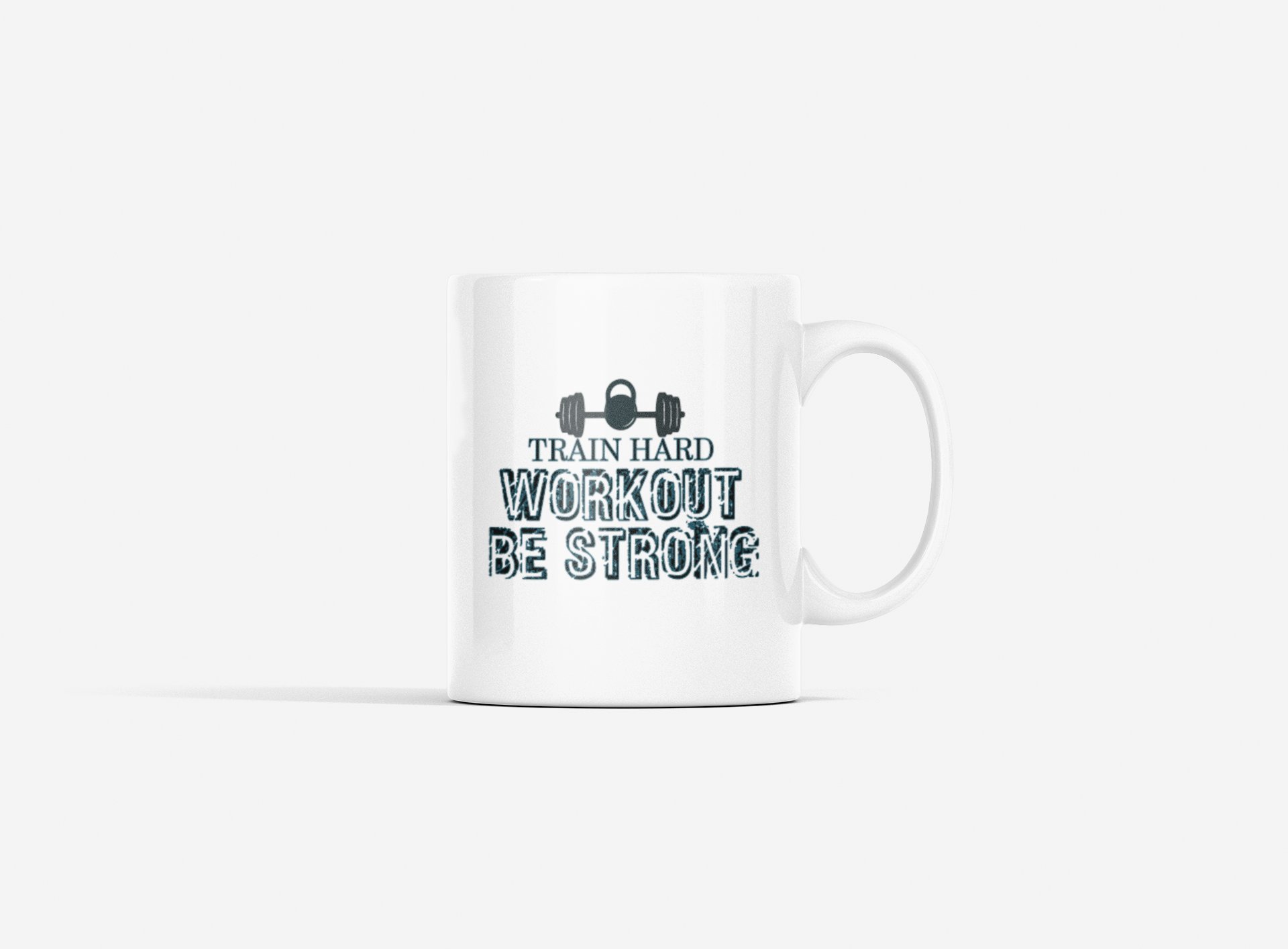 Train Hard, Workout, Be Strong,(BG Black) - gym themed printed ceramic white coffee and tea mugs/ cups for gym lovers