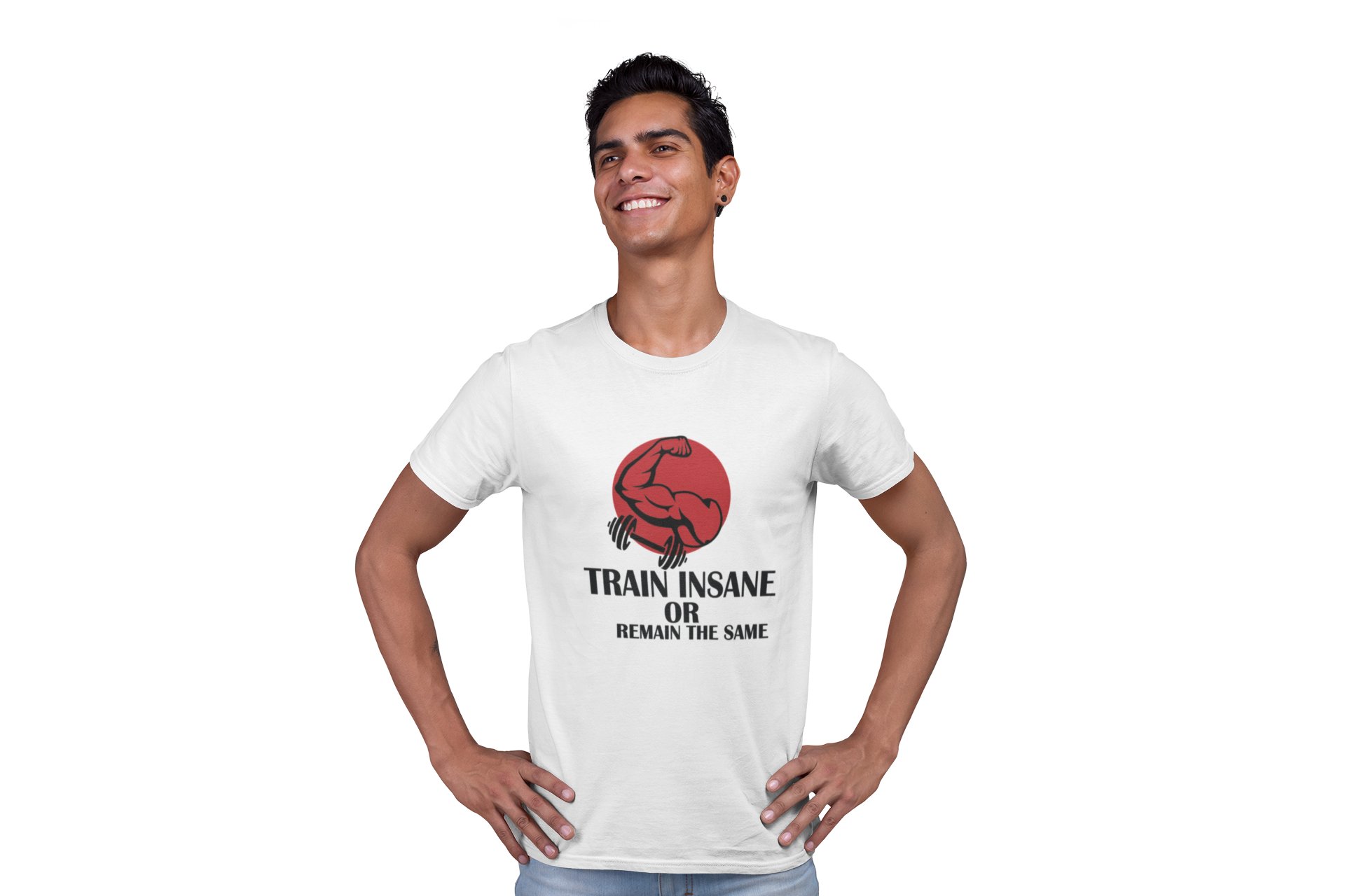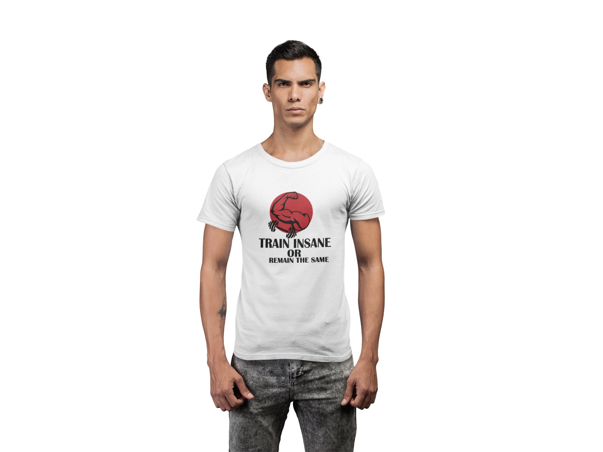 Train Insane or Remain The Same Round Neck Gym Tshirt (White Tshirt) - Clothes for Gym Lovers - Suitable for Gym Going Person - Foremost Gifting Material for Your Friends and Close Ones