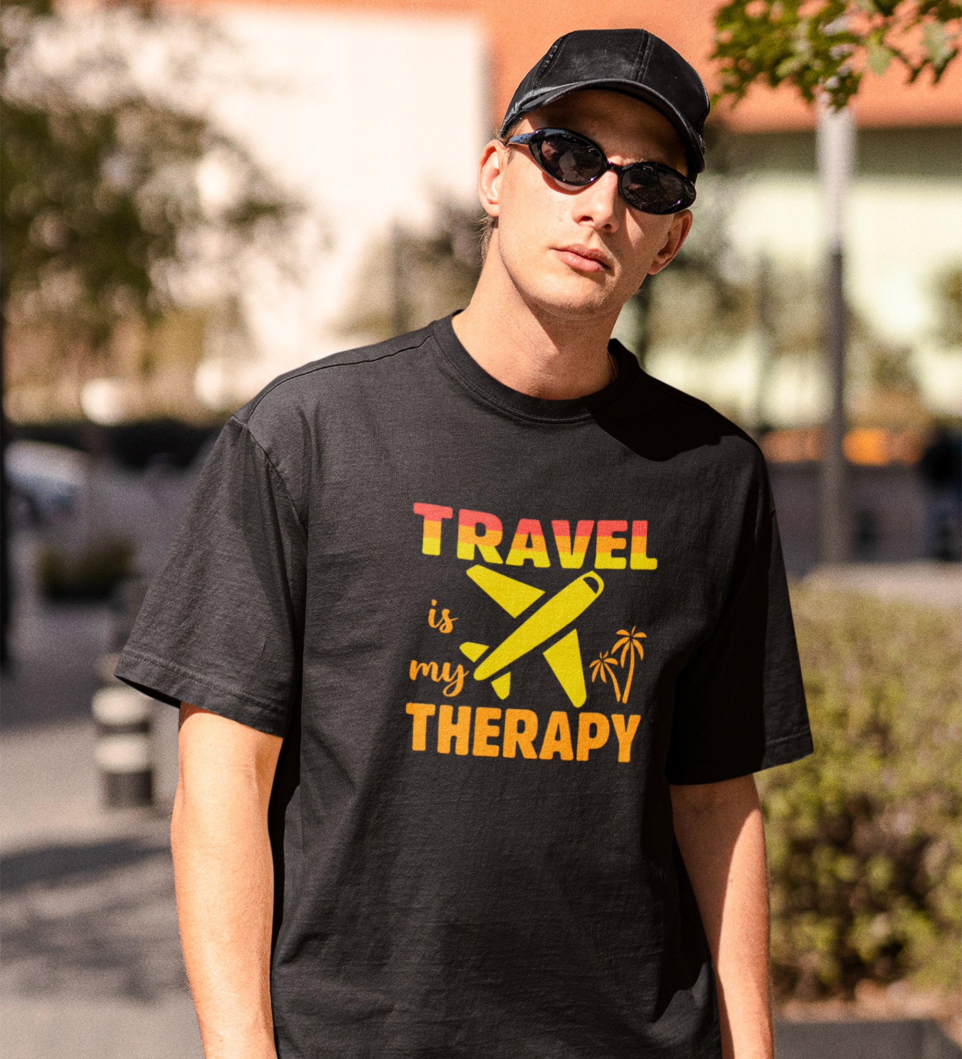 JD.TRENDS The Travel Therapy Black Round Neck Cotton Half Sleeved Men's T-Shirt with Printed Graphics