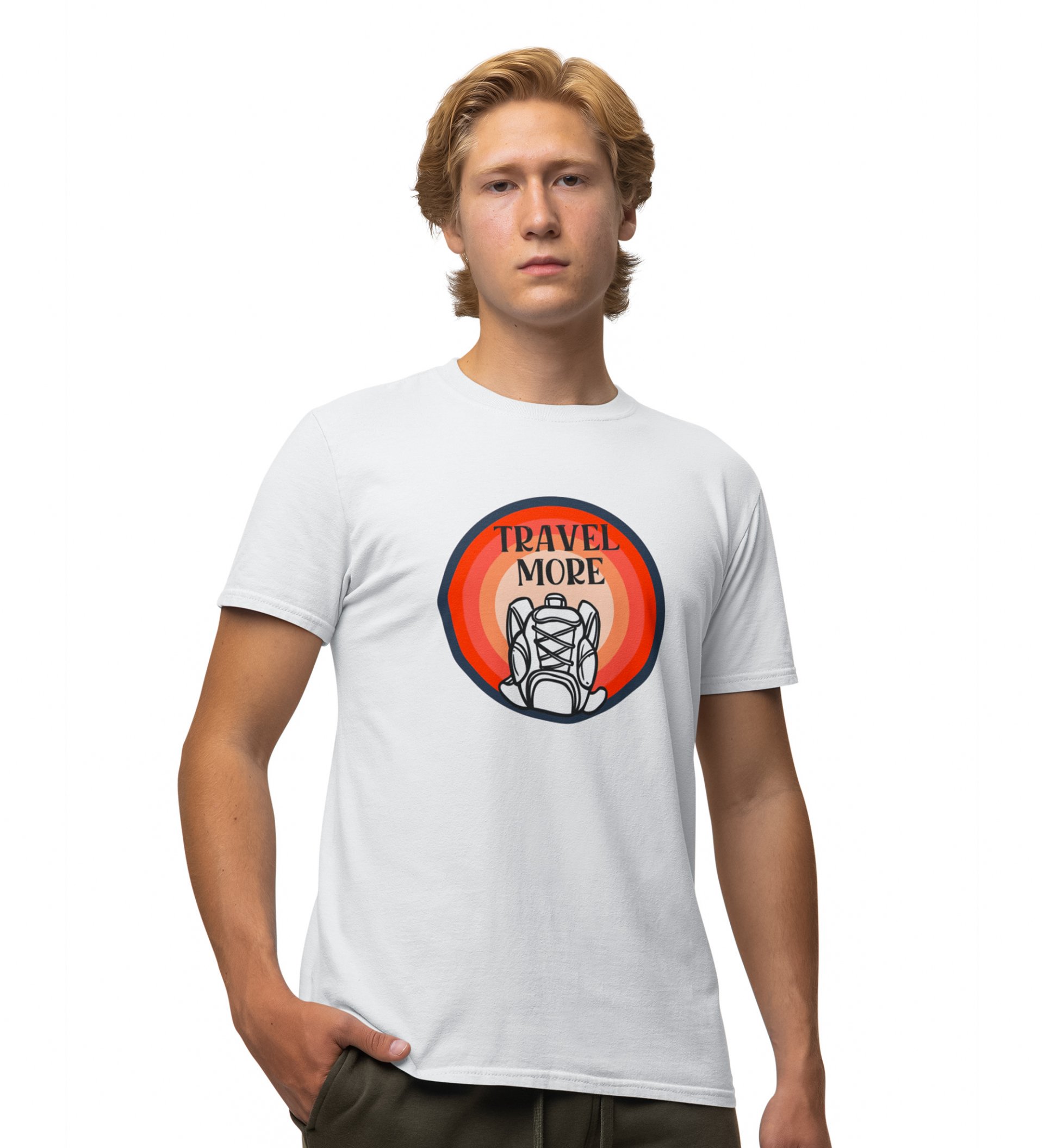JD.TRENDS Travel More White Round Neck Cotton Half Sleeved Men's T-Shirt with Printed Graphics
