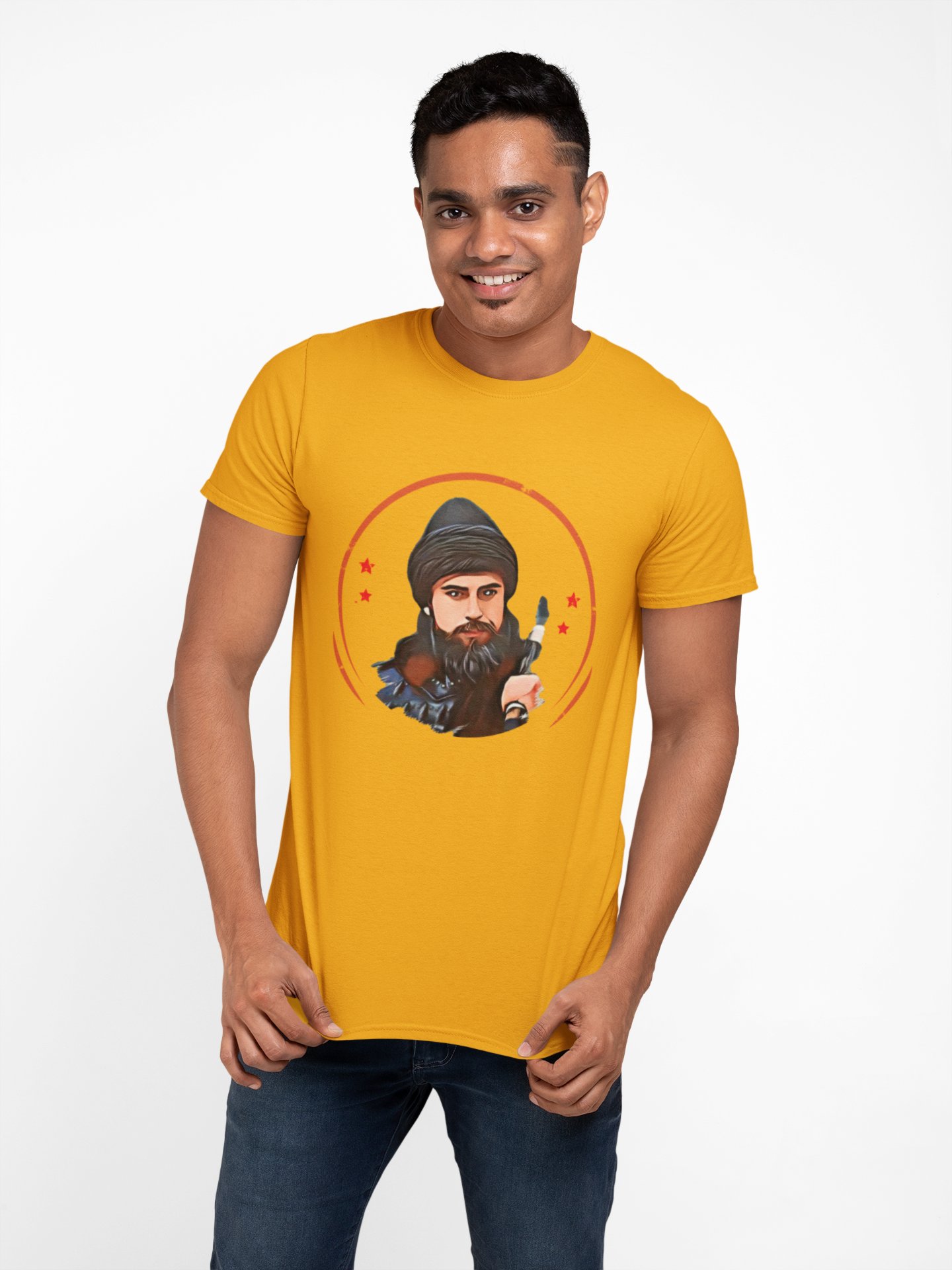 Turgut alp - Character Illustration - Yellow - The Ertugrul Ghazi - 100% cotton t-shirt for Men with soft feel and a stylish cut