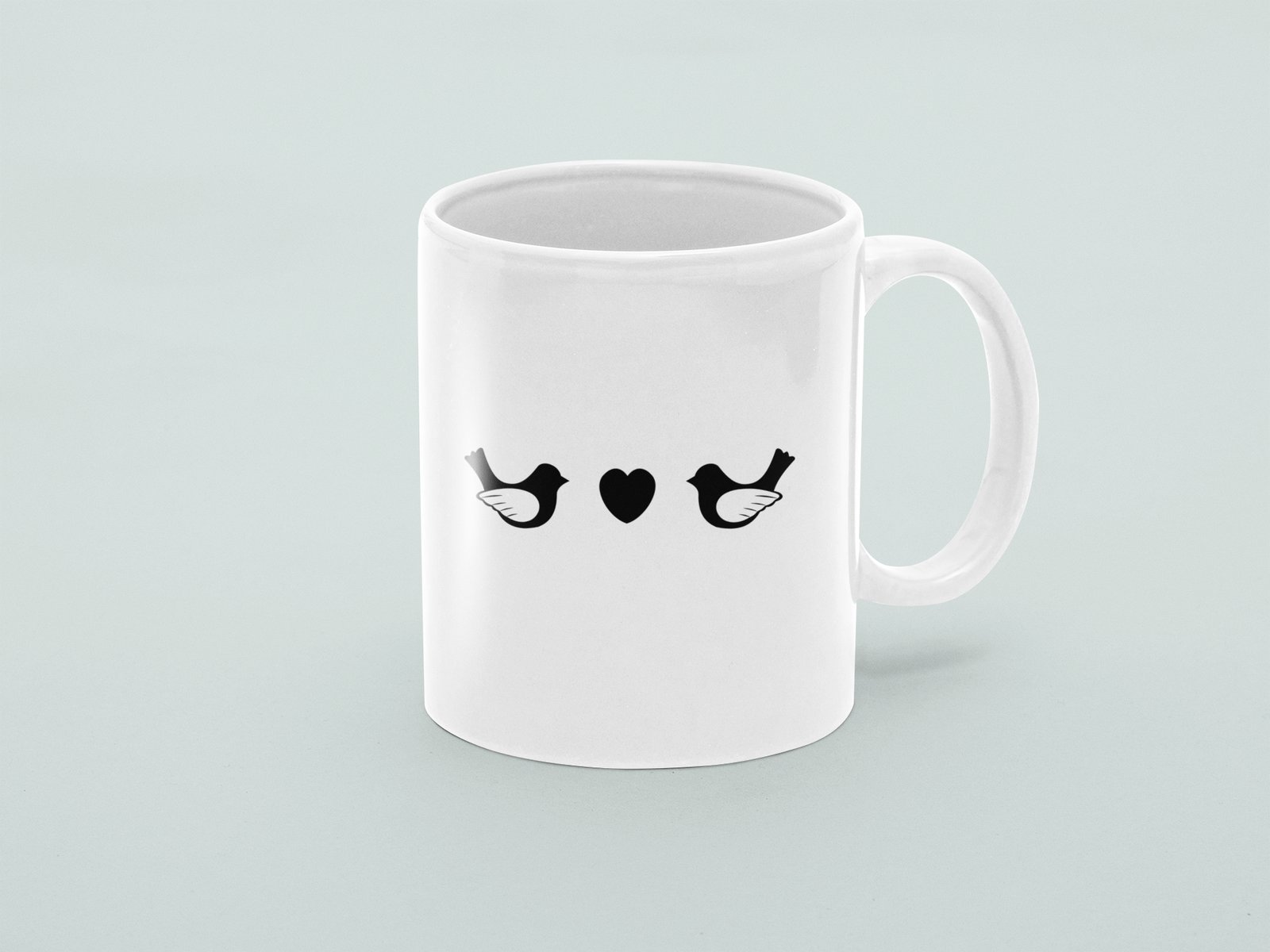 Two Birds - valentine themed printed ceramic white coffee and tea mugs/ cups