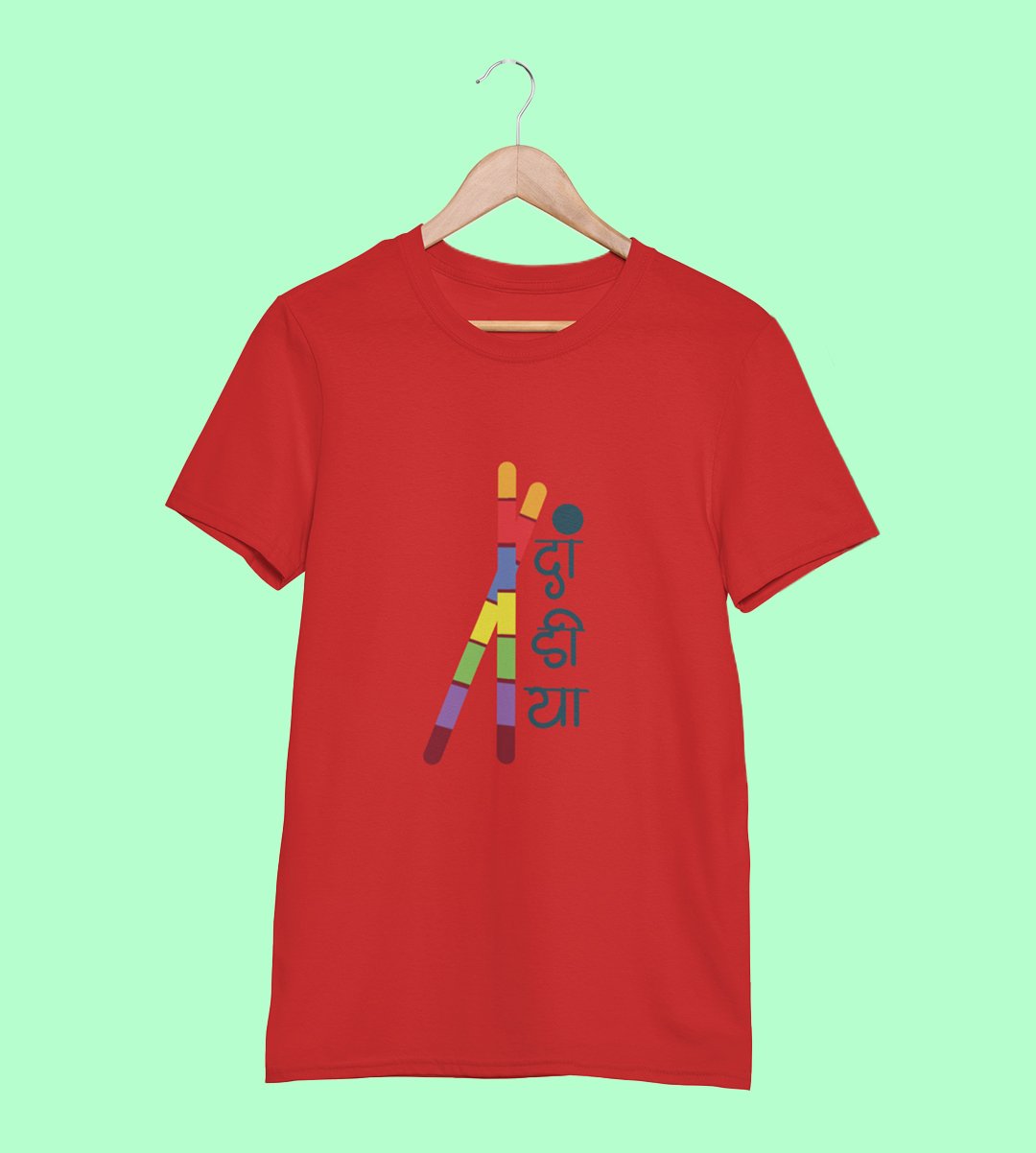 Two dandiyas printed unisex adults round neck cotton half-sleeve red tshirt specially for Navratri festival/ Durga puja