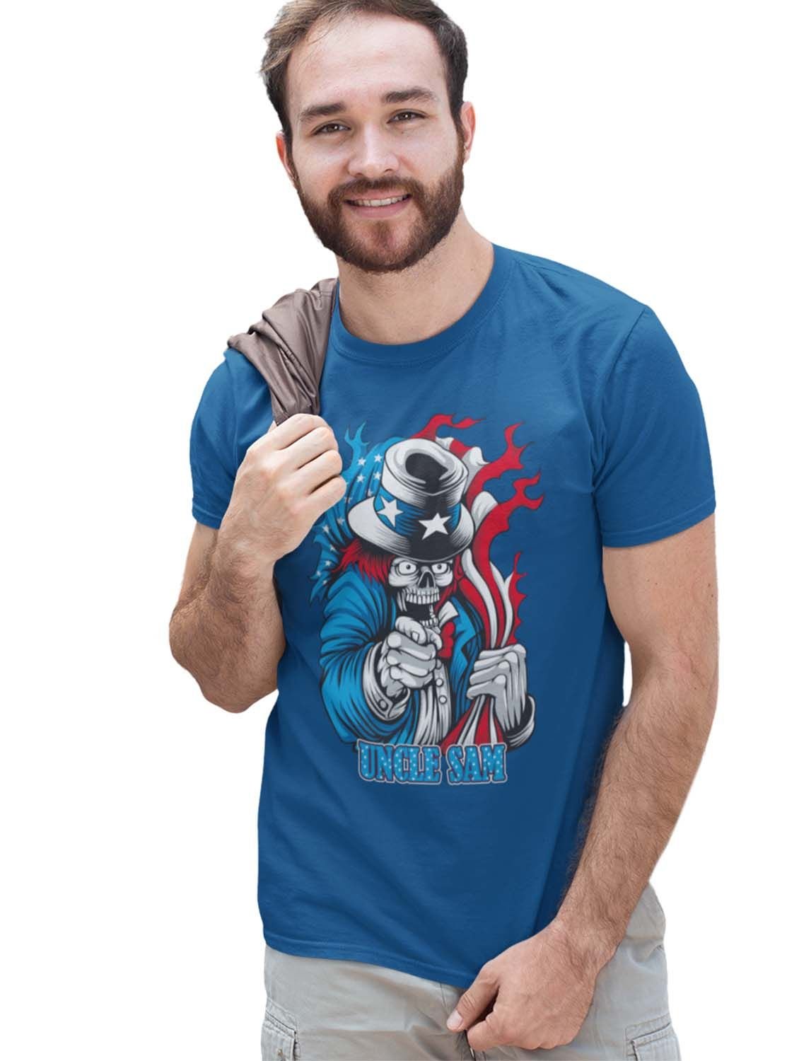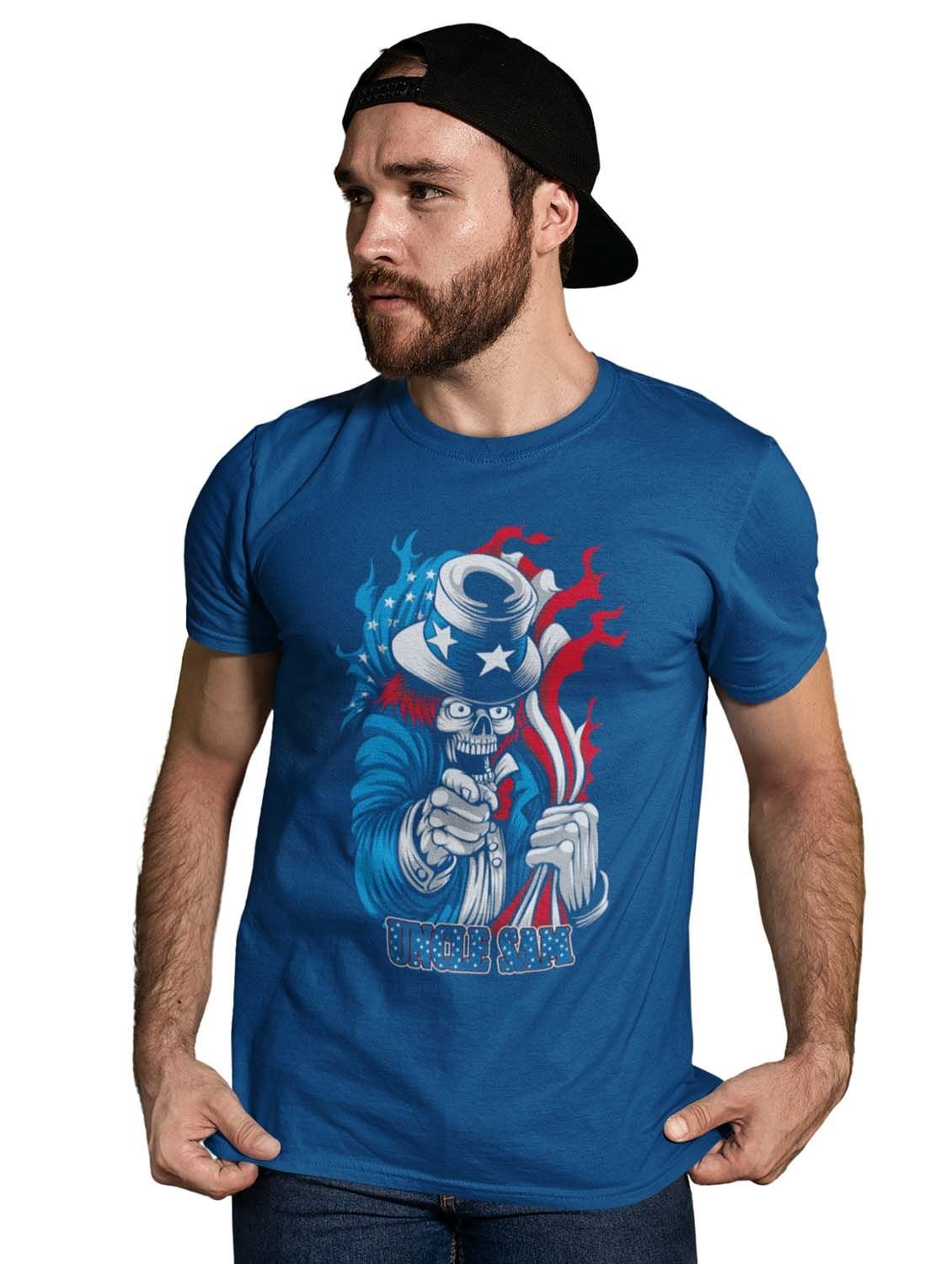 Uncle Sam Blue Round Neck Cotton Half Sleeved T-Shirt with Printed Graphics