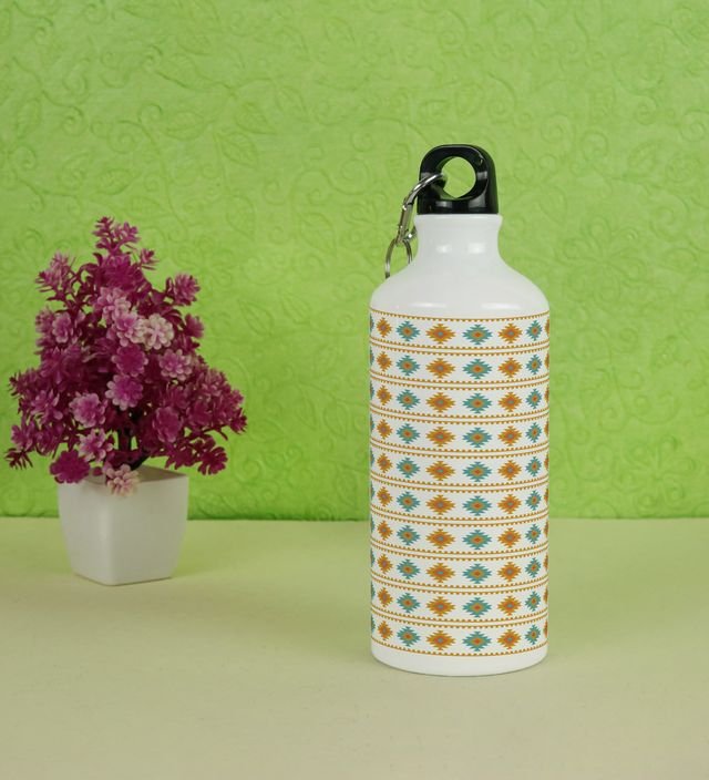 Unique Ethnic Geometric Tribal Mexican Aztec Print Printed Aluminium Water Bottle 600ml