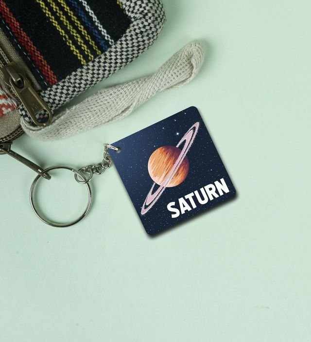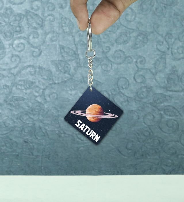 Unique Saturn Planet Artwork Printed Keychain Pack of 2