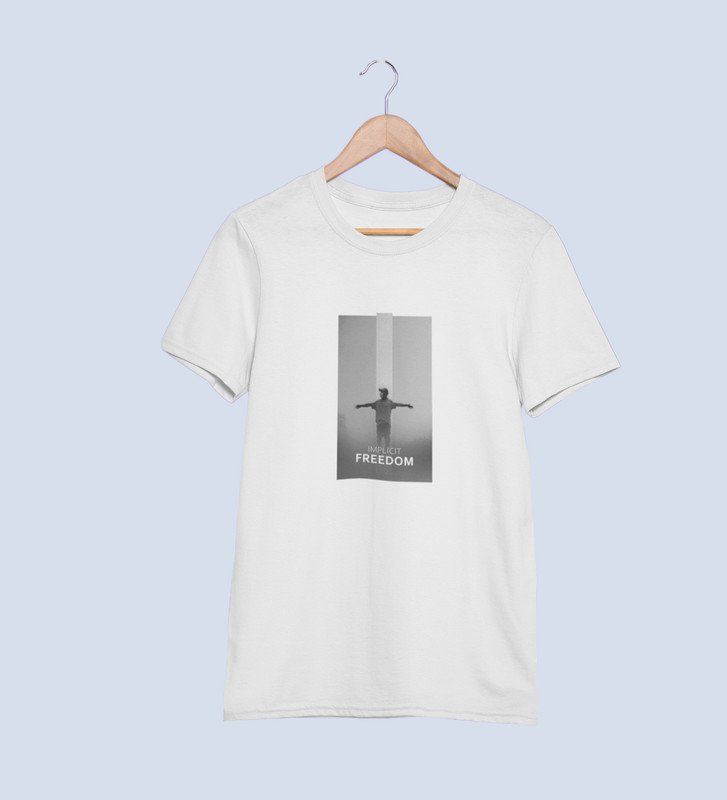 Unspoken Freedom, Dynamic Impressions: White Men's Trendy Round Neck T-Shirt with Front Print