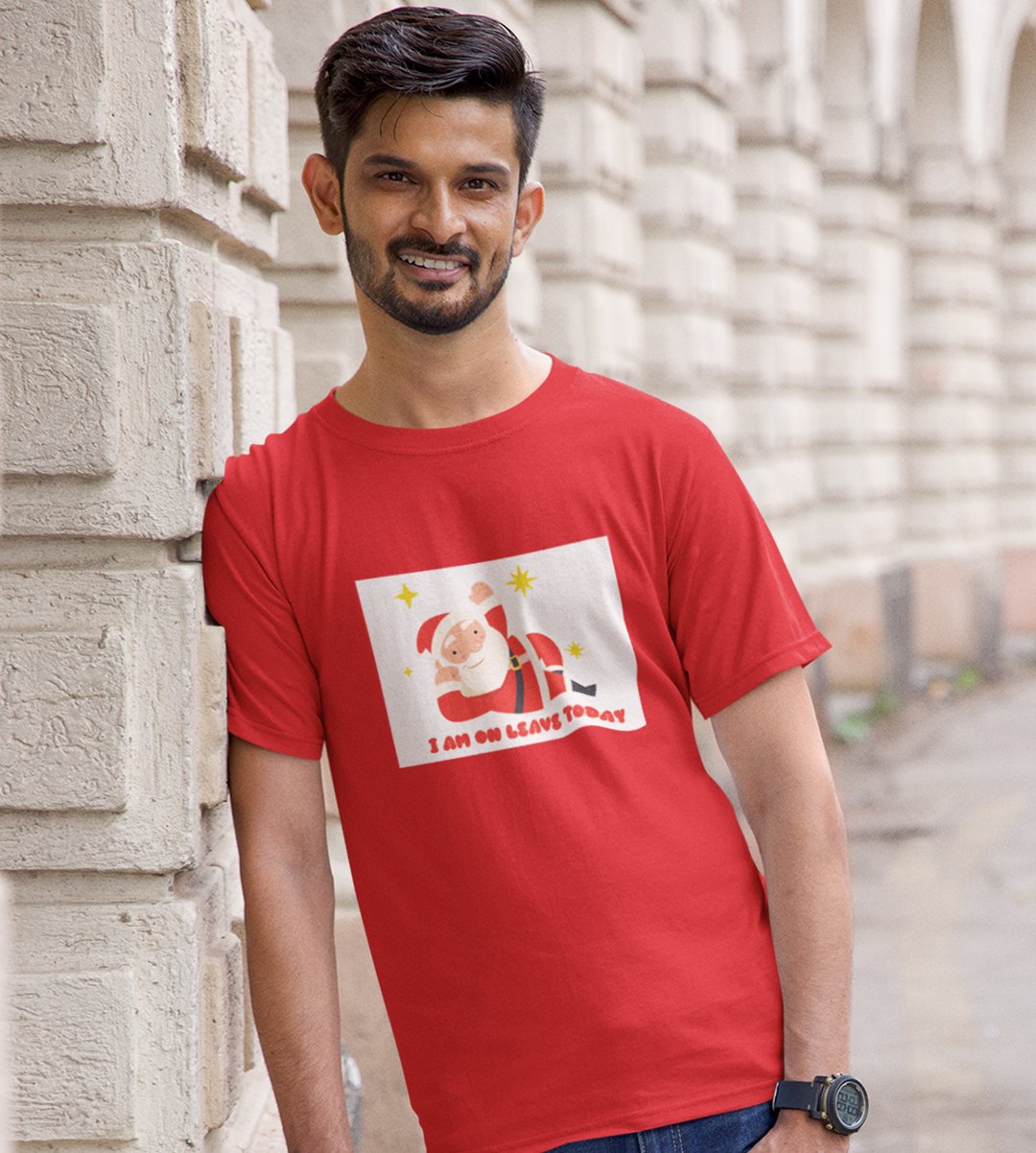Vacational Santa: Humorously Printed T-shirt (Red) Best Gift For Secret Santa