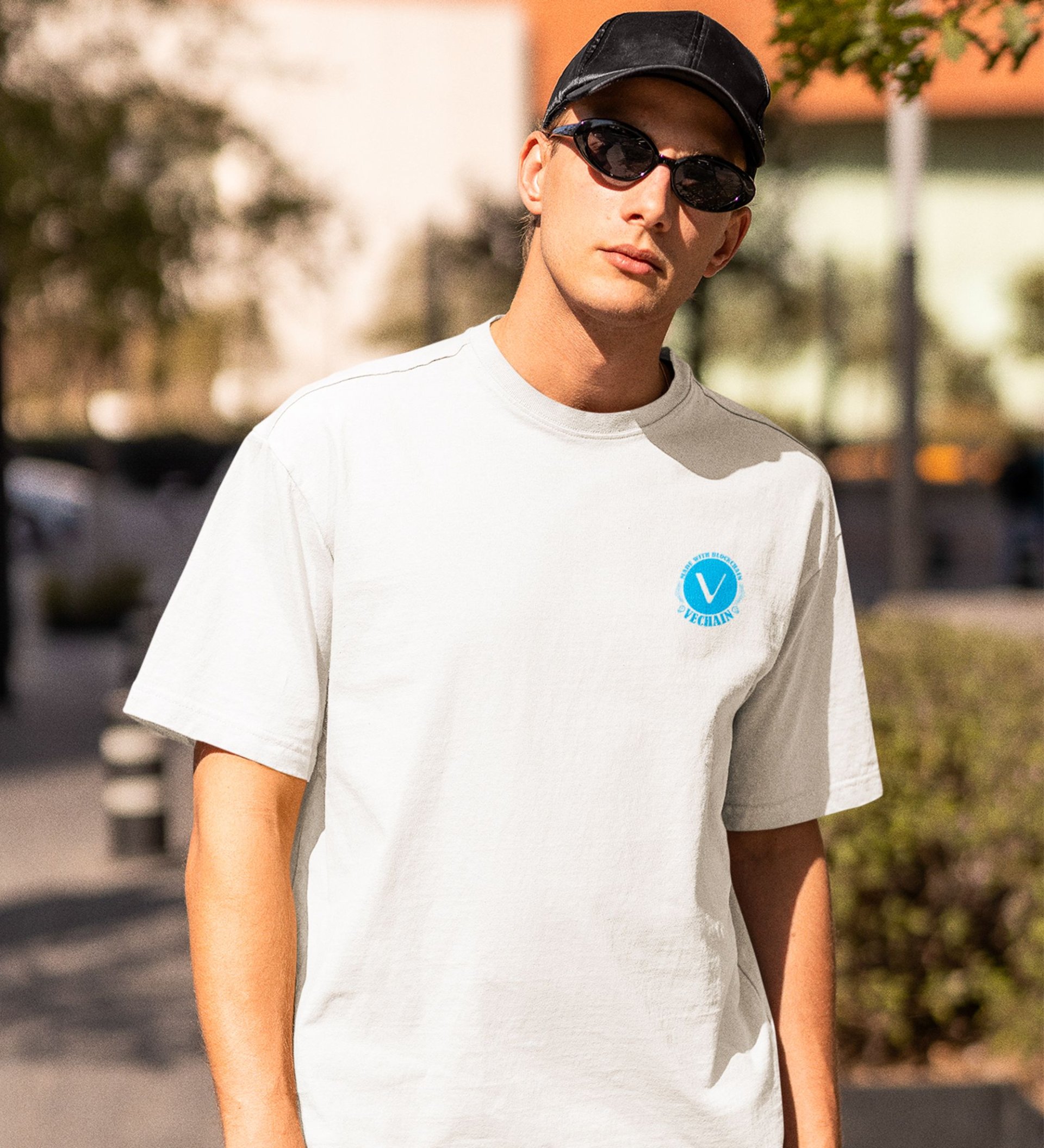 Vigor Vechain Wings White Round Neck Cotton Half Sleeved Men's T Shirt with Printed Graphics