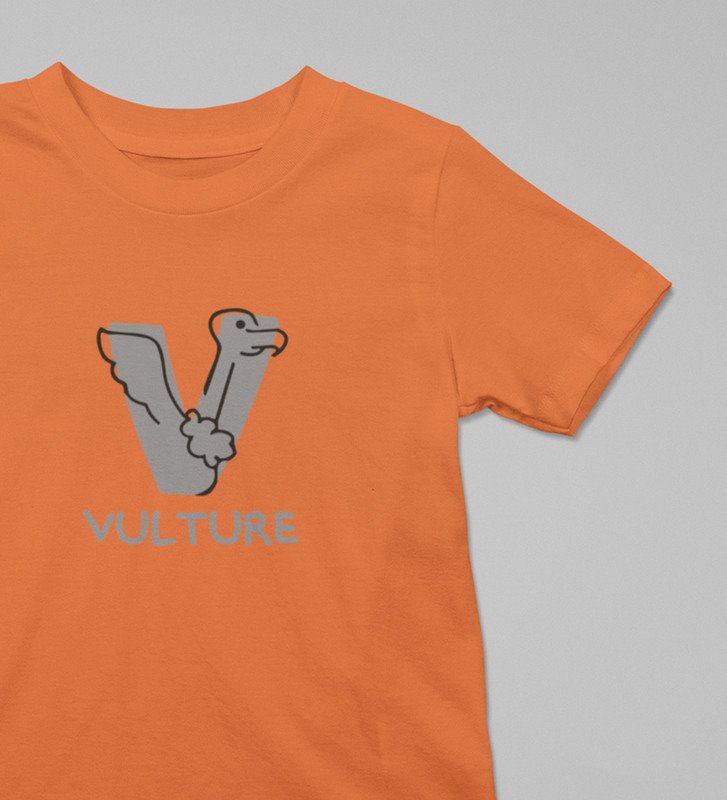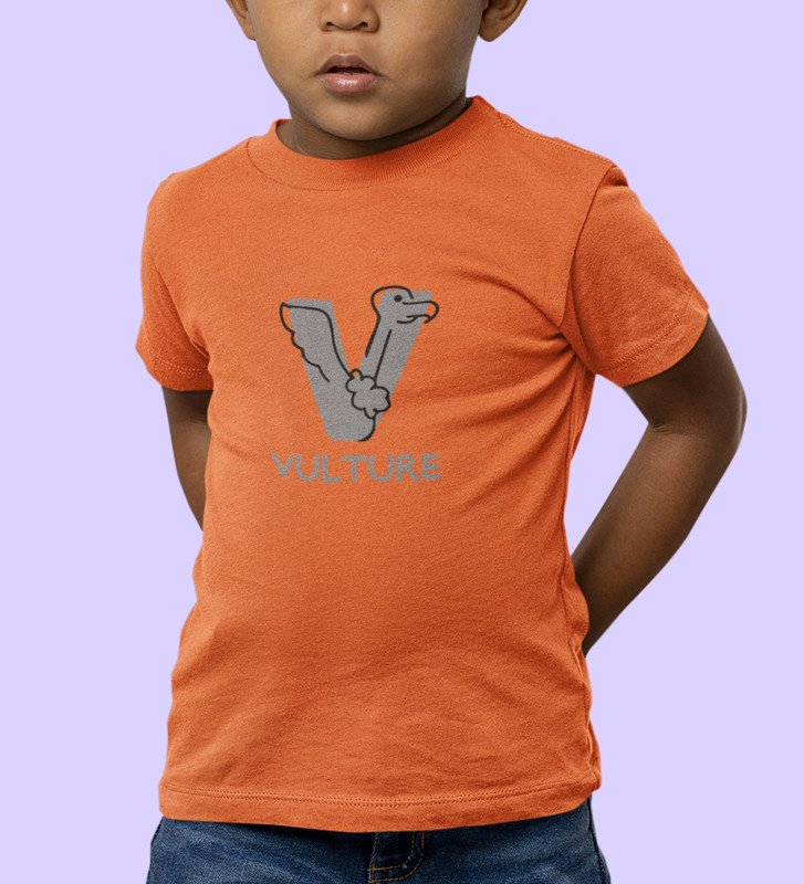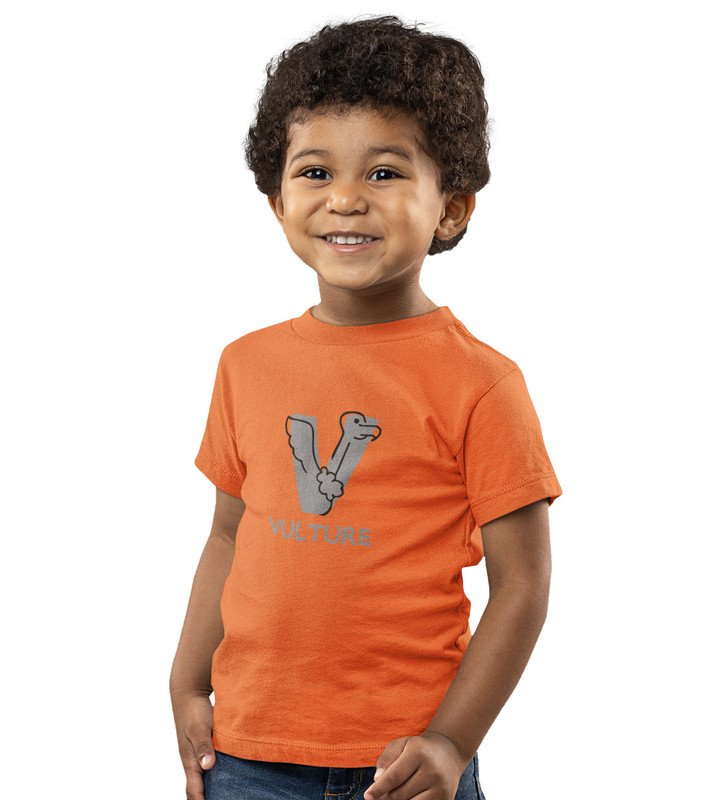 Vulture, Boys Round Neck Printed Blended Cotton Tshirt (Orange)