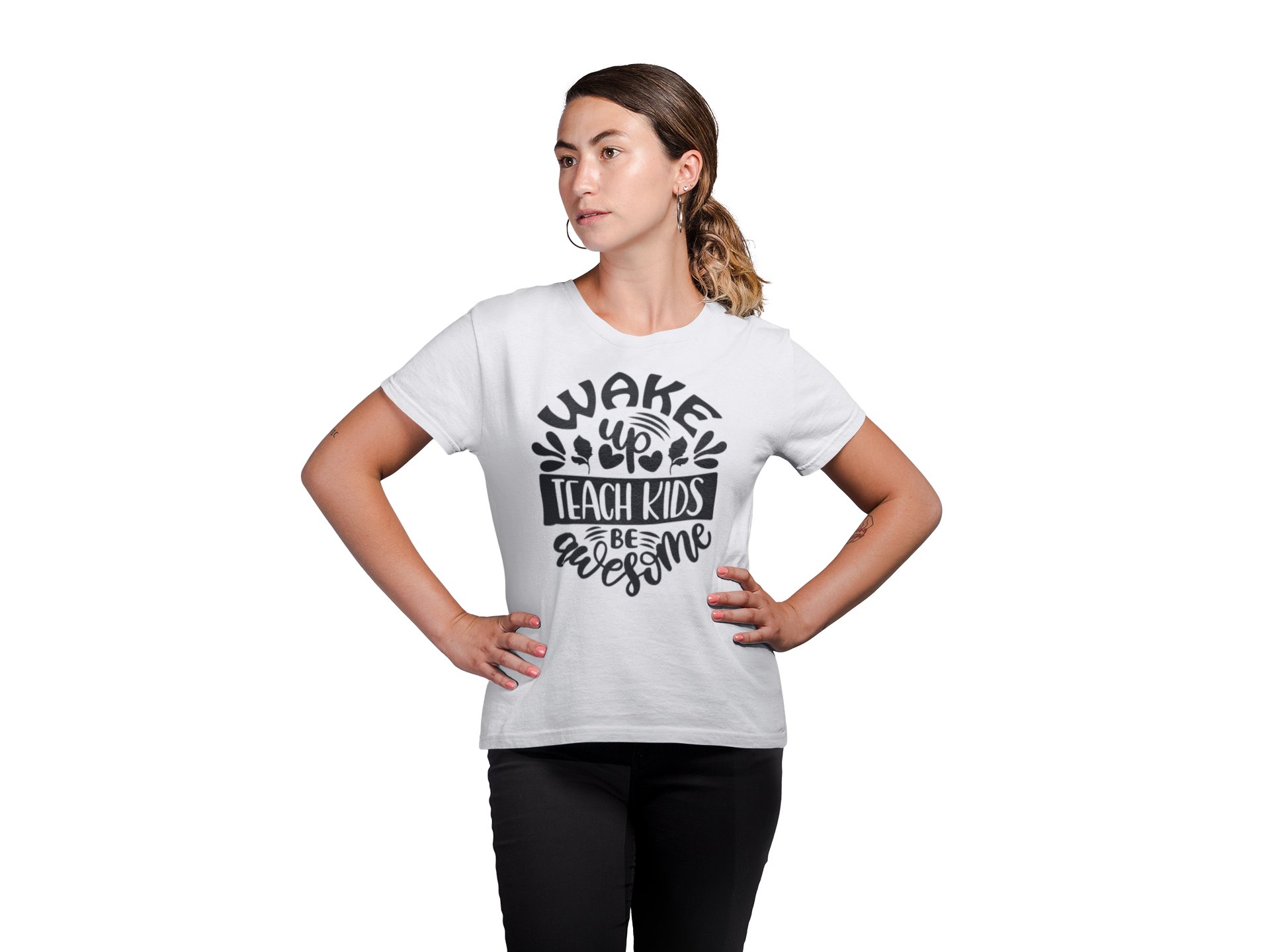 Wake and Be Awsome GirlsPrinted White T-Shirts