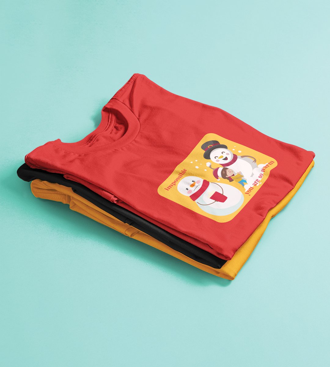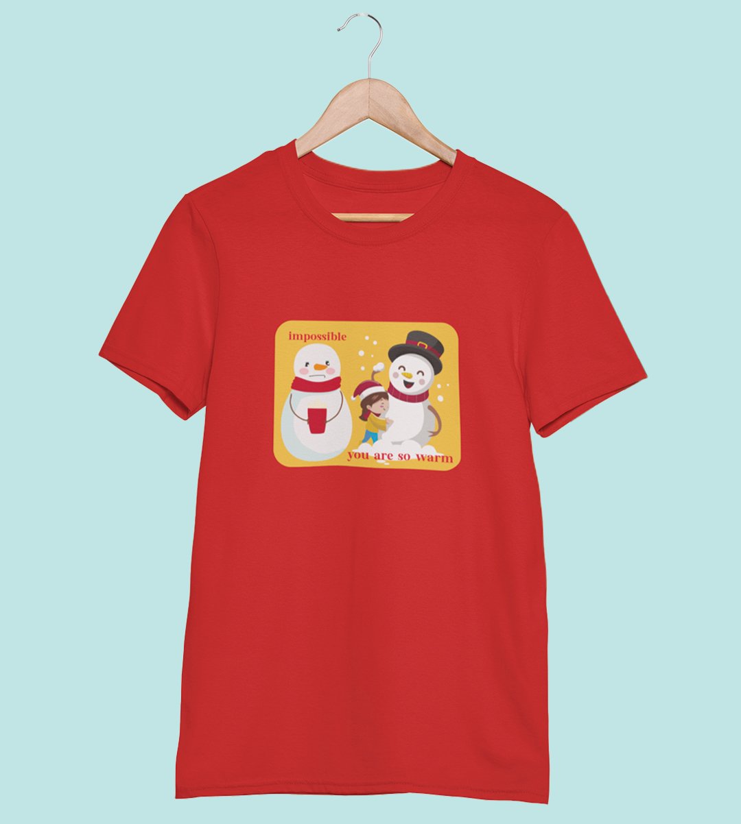 Warm Snowman : Beautifully Printed T-shirt (Red) Perfect Gift For Christmas Eve