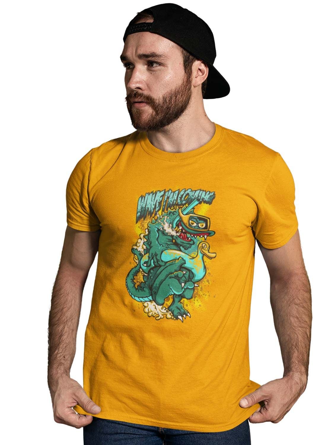 The Wave Monster Graphic Printed Yellow Cotton Round Neck Half Sleeves Tshirt