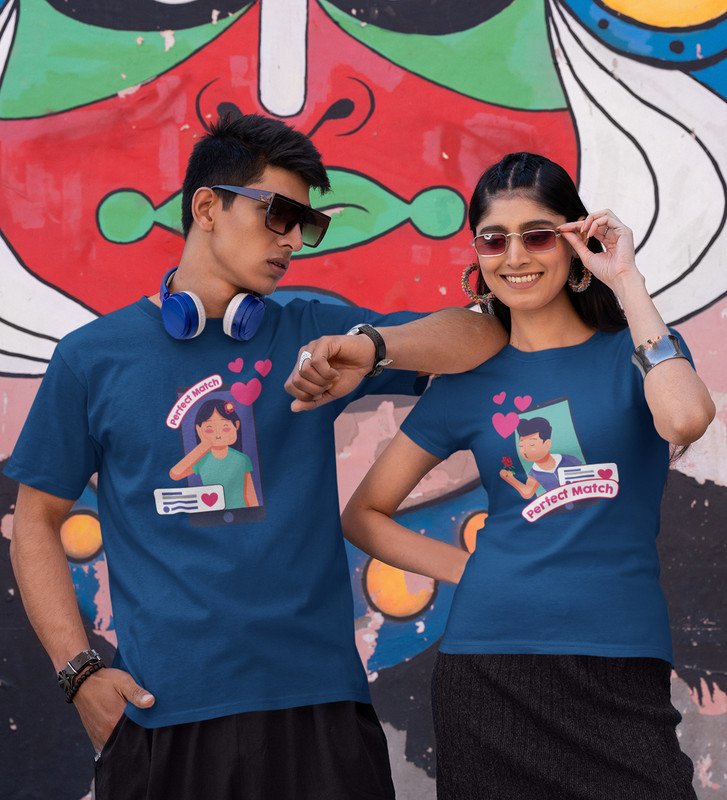 We Are A Perfect Match Couple Print (blue) T-shirts