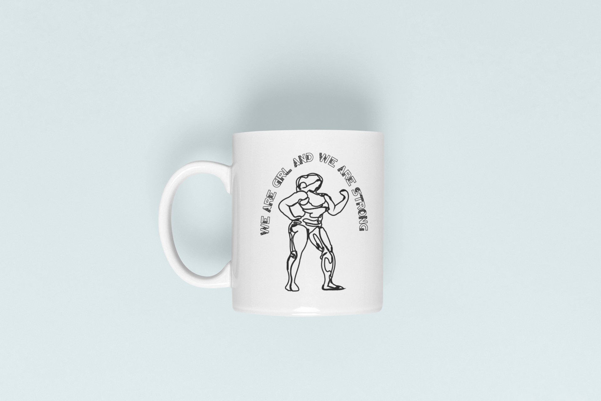 We are Girls - line art themed printed ceramic white coffee and tea mugs/ cups