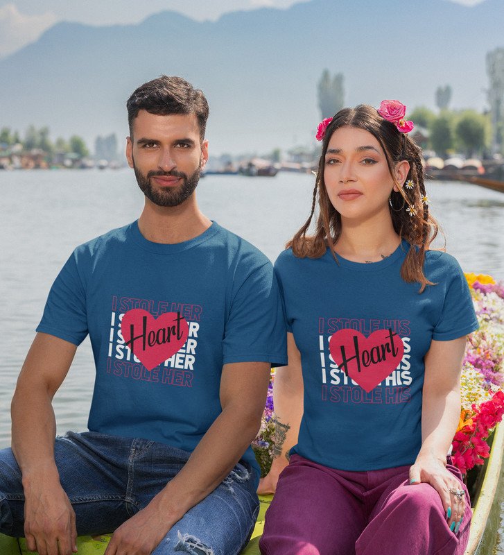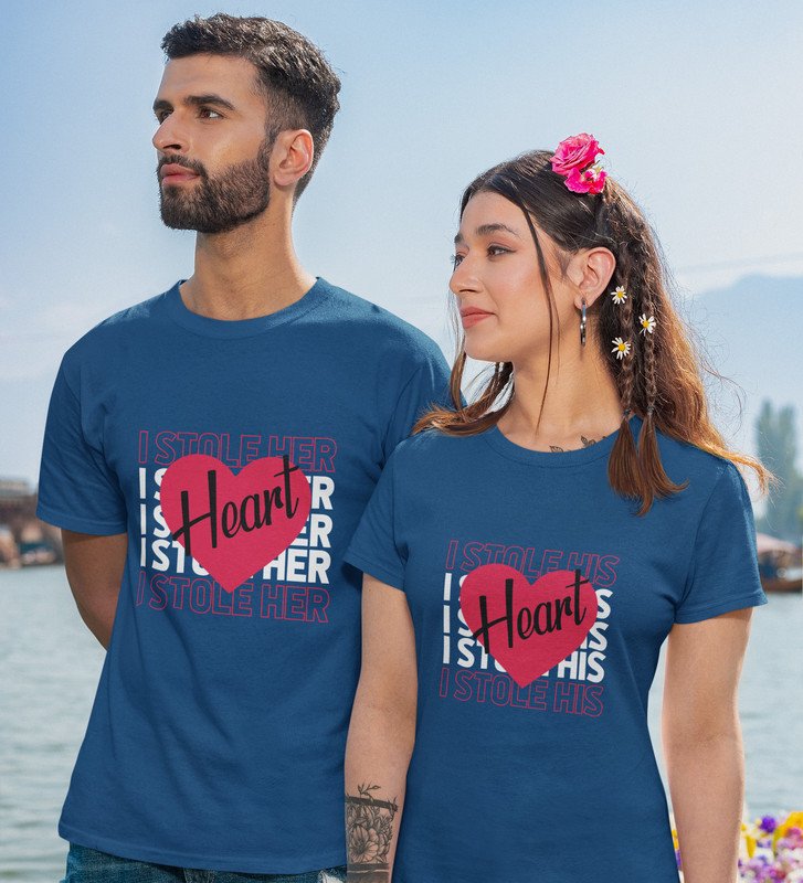 We Stole Each Other's Heart Printed Couple (blue) T-shirts