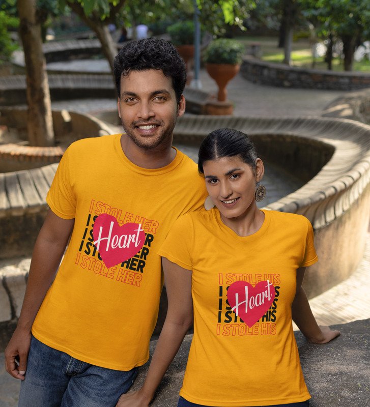We Stole Each Other's Heart Printed Couple (Yellow) T-shirts