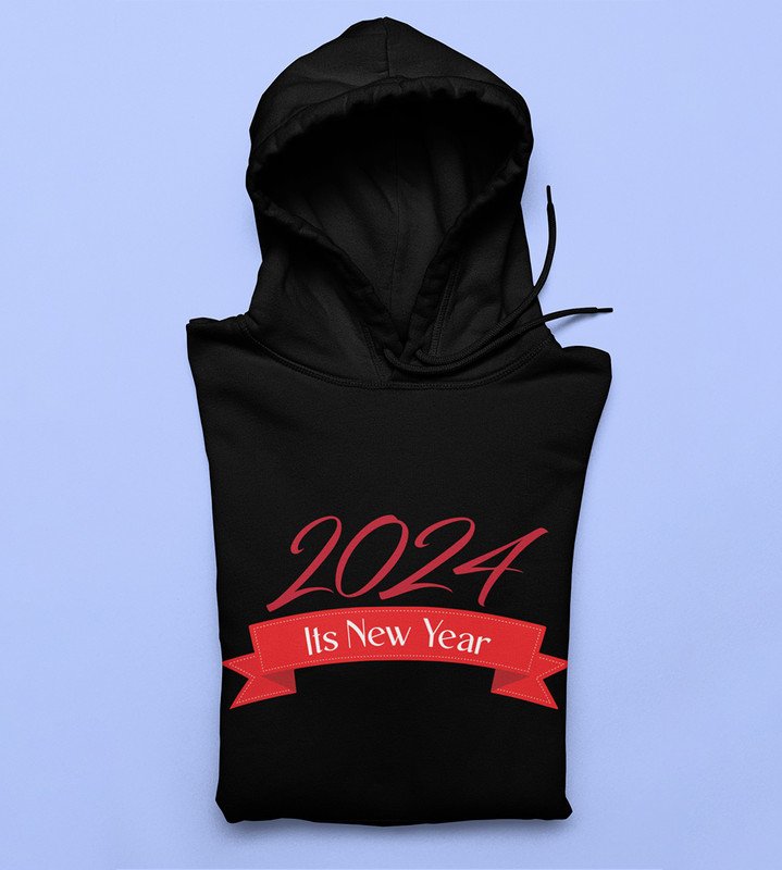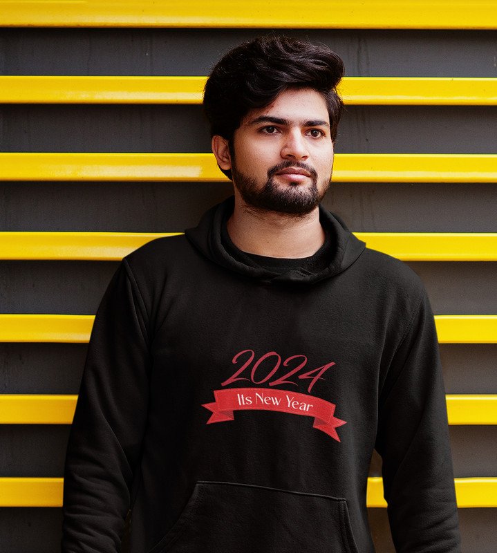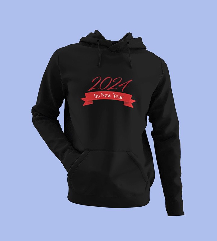 Welcome 2024, Black Graphics Printed Hoodies For Mens On New Year Theme Best Gift For New Year