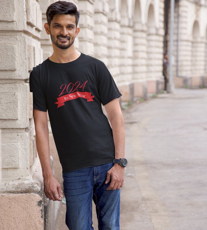 Welcome 2024Black Graphics Printed T-shirt For Mens On New Year Theme Best Gift For New Year