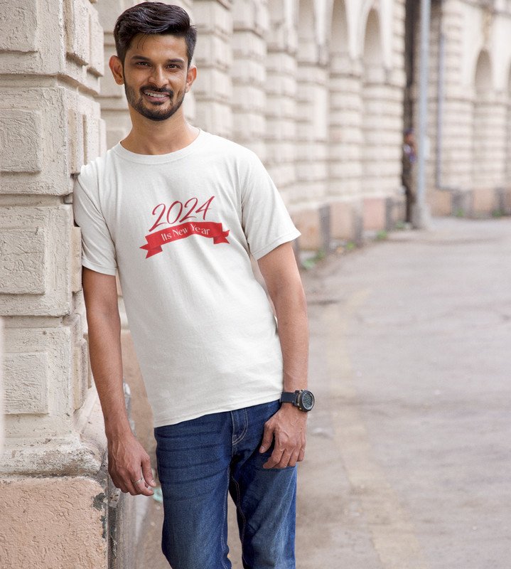 Welcome 2024White Graphics Printed T-shirt For Mens On New Year Theme Best Gift For New Year