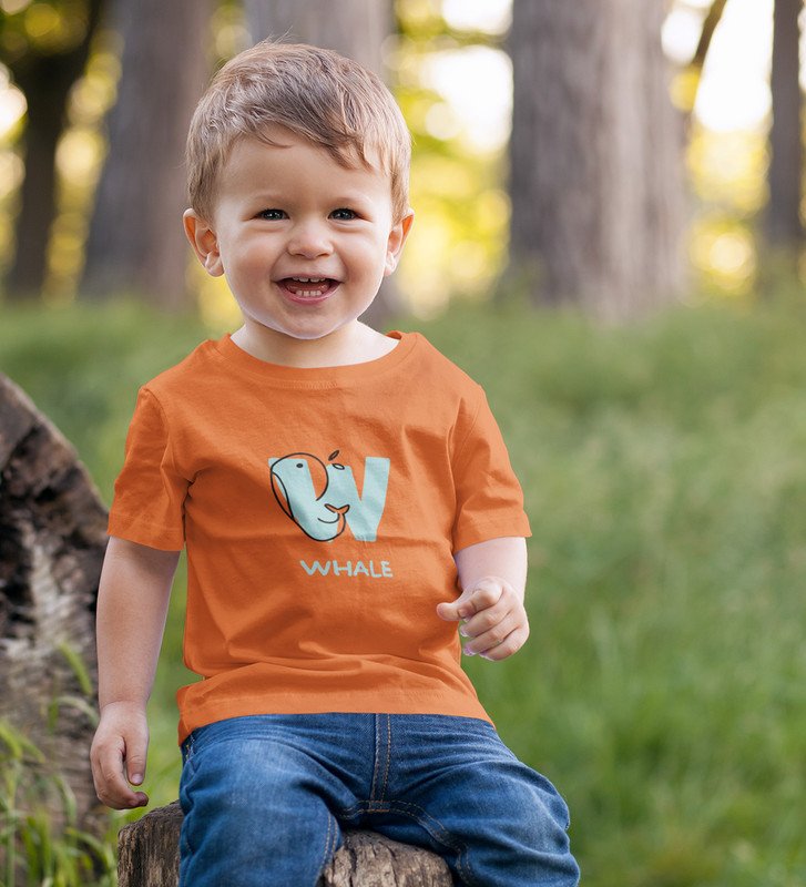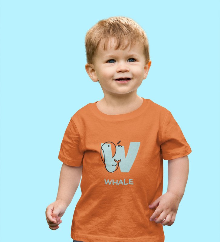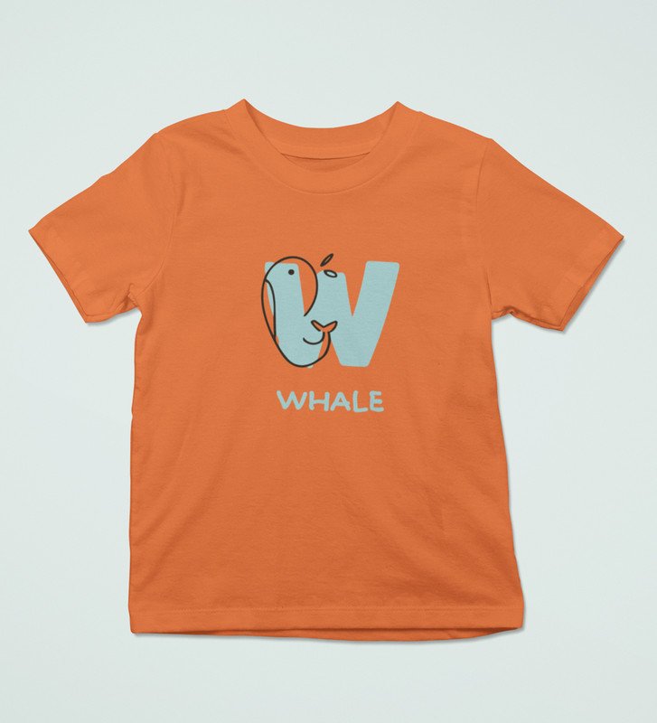 Whale, Boys Printed Crew Neck Tshirt (orange) Printed Cotton Tshirt for Boys