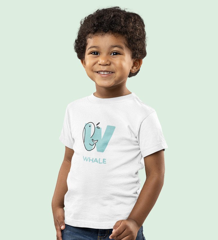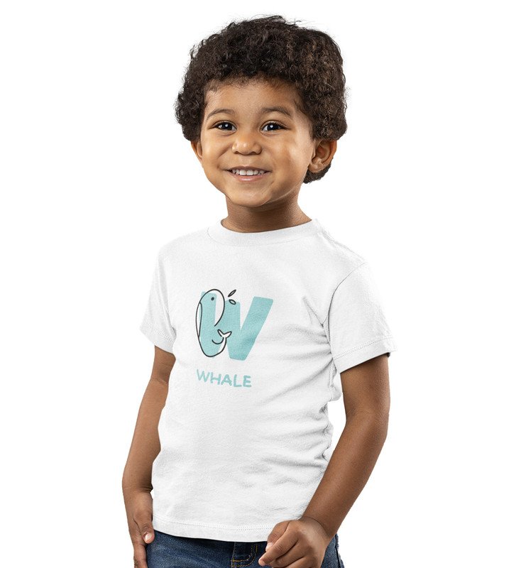 Whale, Boys Printed Crew Neck Tshirt (White) Printed Cotton Tshirt for Boys