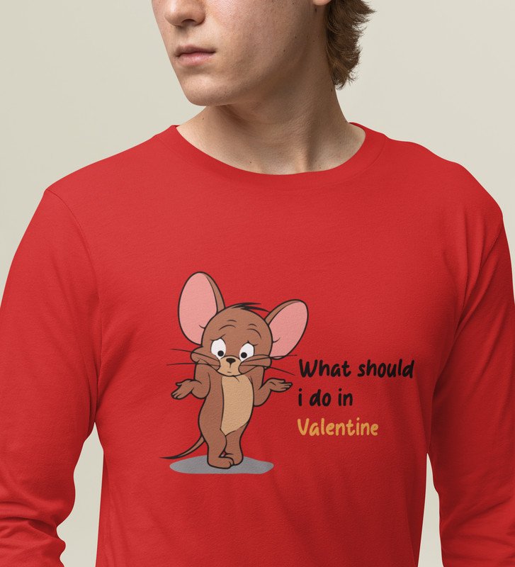 What Should I Do In Valentine: Printed (red) Full Sleeve T-Shirt For Singles