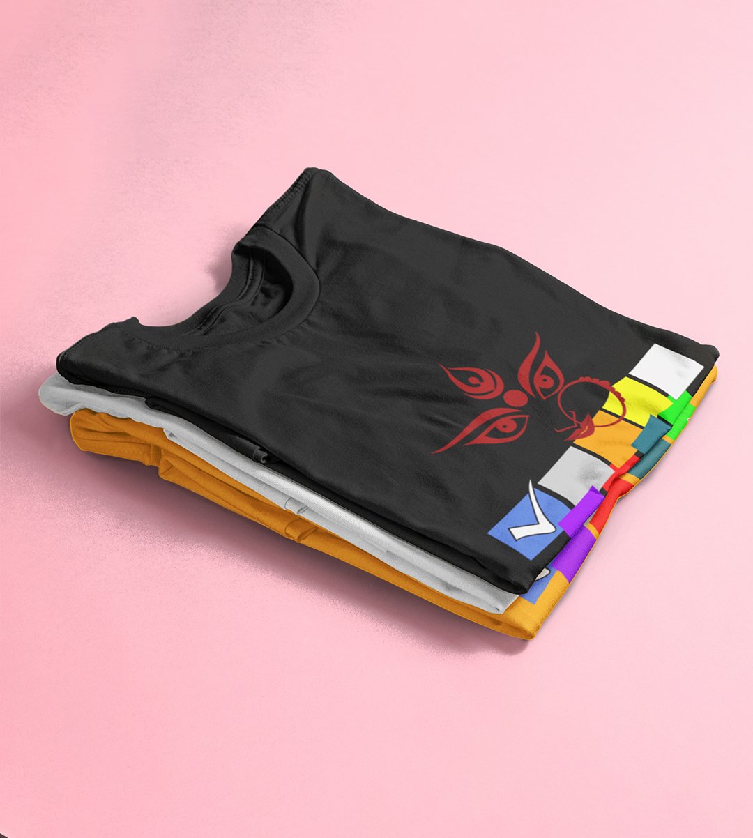 Navratri is a very auspicious festival for hindus. It takes place at the beginning of October and sometimes September. Enjoy the 9 days of festivities with full zeal and make yourself submerged in the love of Maa Durga. Navratri is also known as Durga Puja. And with this Tees, you can shine like a star during this festive season with our navratri themed cotton half sleeved Tshirts. You can pair our t-shirts with trousers and denim of your choice and make it a weekday smart casual or weekend wear. This is durable. This tshirt is smooth and soft which makes you comfortable to wear during all seasons. The printing in it is durable and odourless. It has five sizes, S,M,L,XL,XXL. The Tshirt colour is intact even after repeated washes. It can be kept in your wardrobe and hangers. Please avoid washing mashine to clean this Tee, it may affect the print. Hand wash only. We have brought you many navratri related designs printed on our different colour Tshirts to choose from. Grab it now.