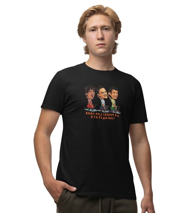 What's The Plan ? Black Round Neck Cotton Half Sleeved Men T-Shirt with Printed Graphics