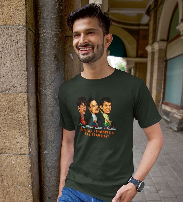 What's The Plan ? Green Round Neck Cotton Half Sleeved Men T-Shirt with Printed Graphics