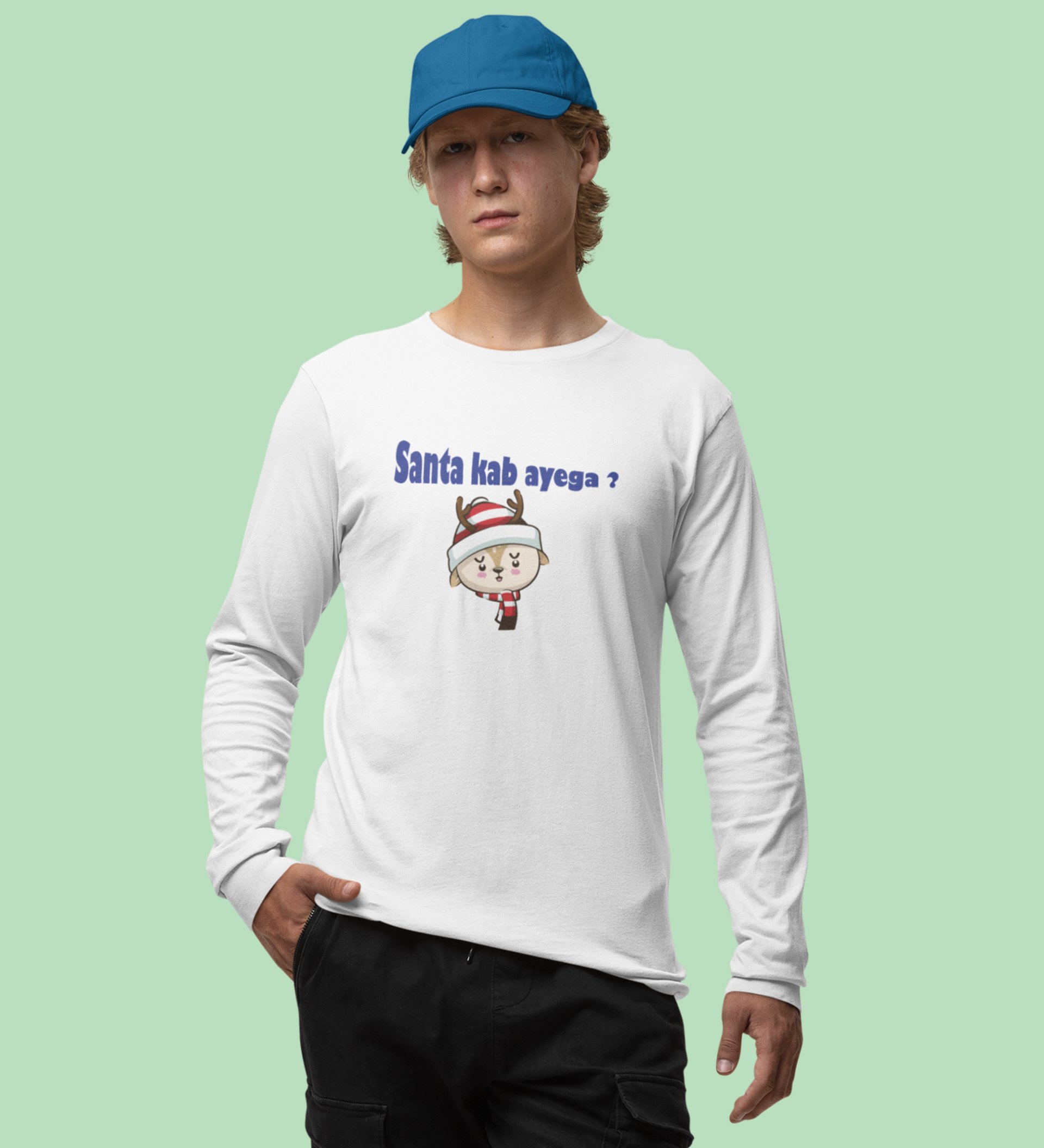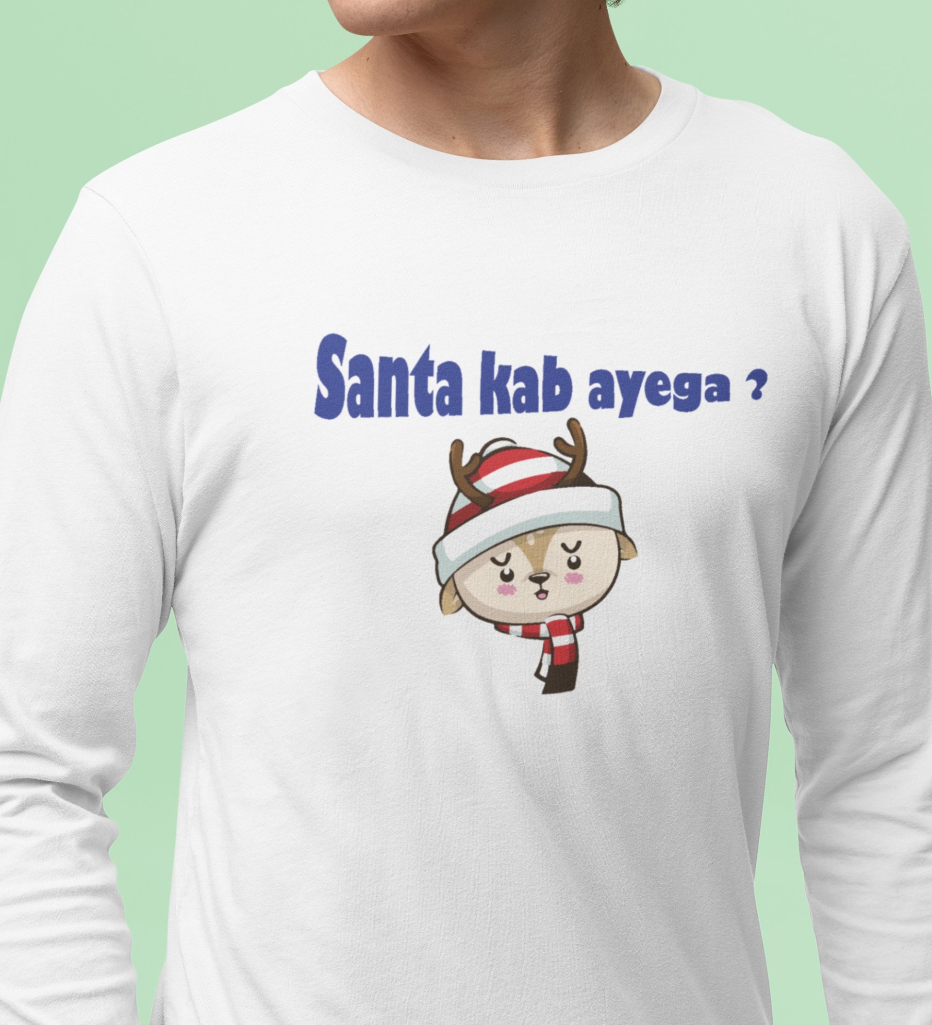 When Will The Santa Come: Christmas WhiteFull Sleeve T-shirt BestFull Sleeve T-shirt Gifting Kids Friends