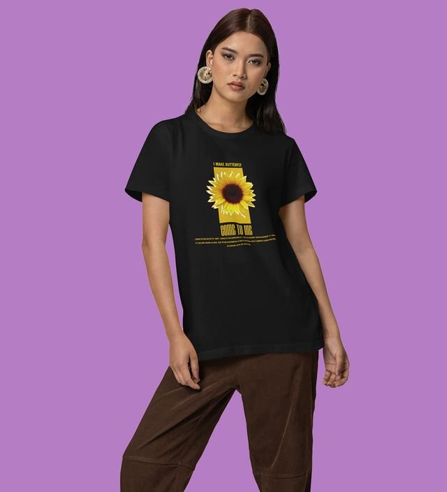 Whispers of Nature: Graphic Printed Black T-Shirt