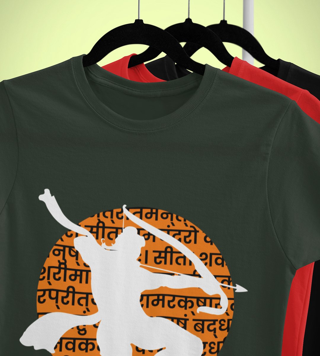 White shadowed Shree Ram printed unisex adults round neck cotton half-sleeve black tshirt specially for Navratri festival/ Durga puja