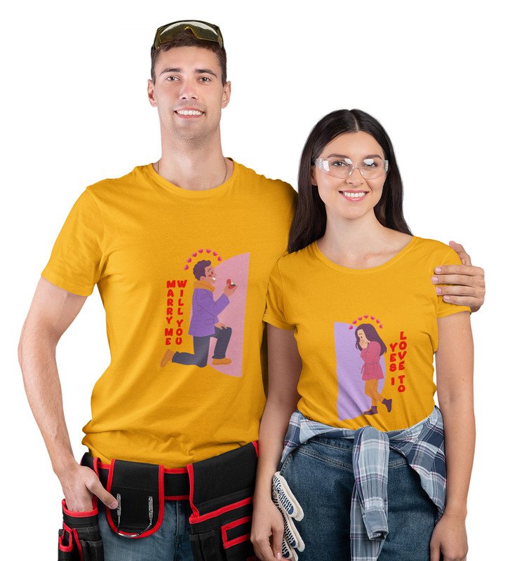 Will You Marry Me? Printed (Yellow) T-shirts For Couples
