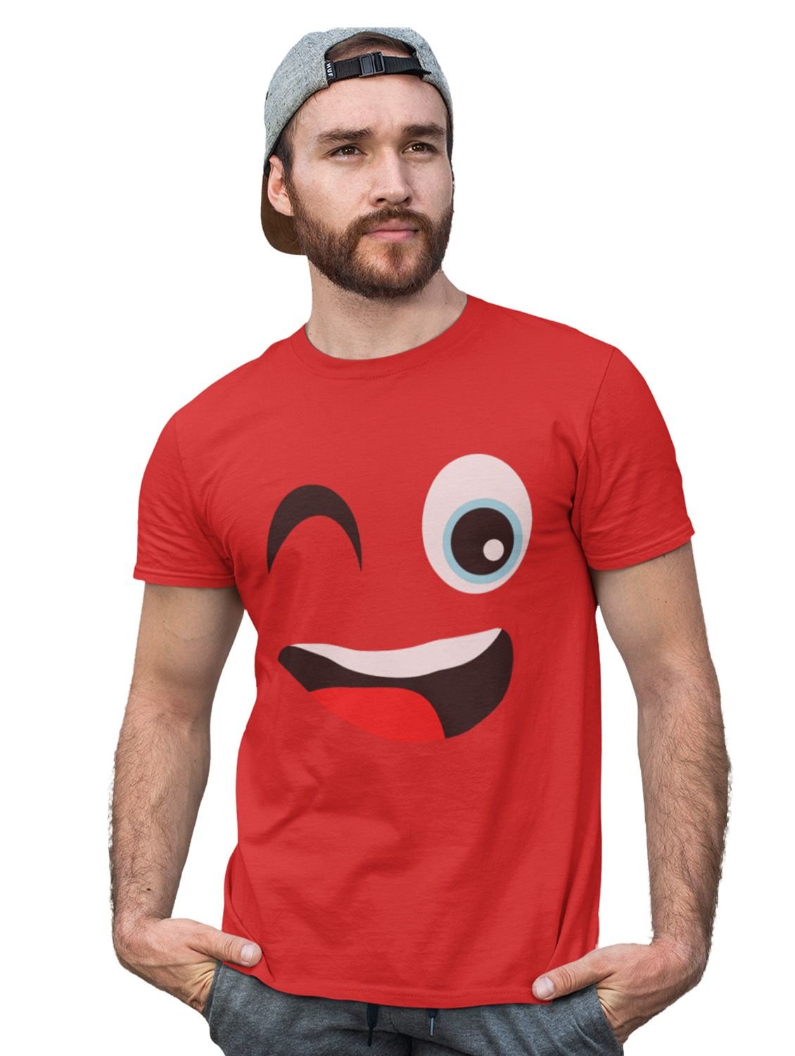 Wink Emoji Blend T-shirt (Red) - Clothes for Emoji Lovers - Foremost Gifting Material for Your Friends and Close Ones