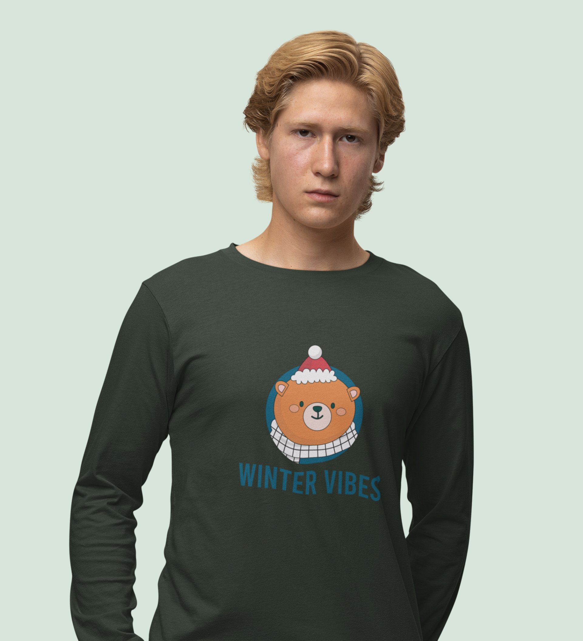 Winter Vibes Bear Tribe: Unique Winter DesignerFull Sleeve T-shirt Green Unique Gift For Boys Girls
