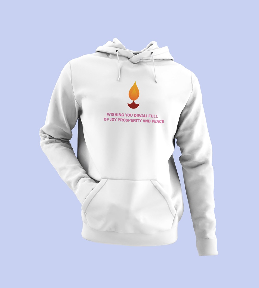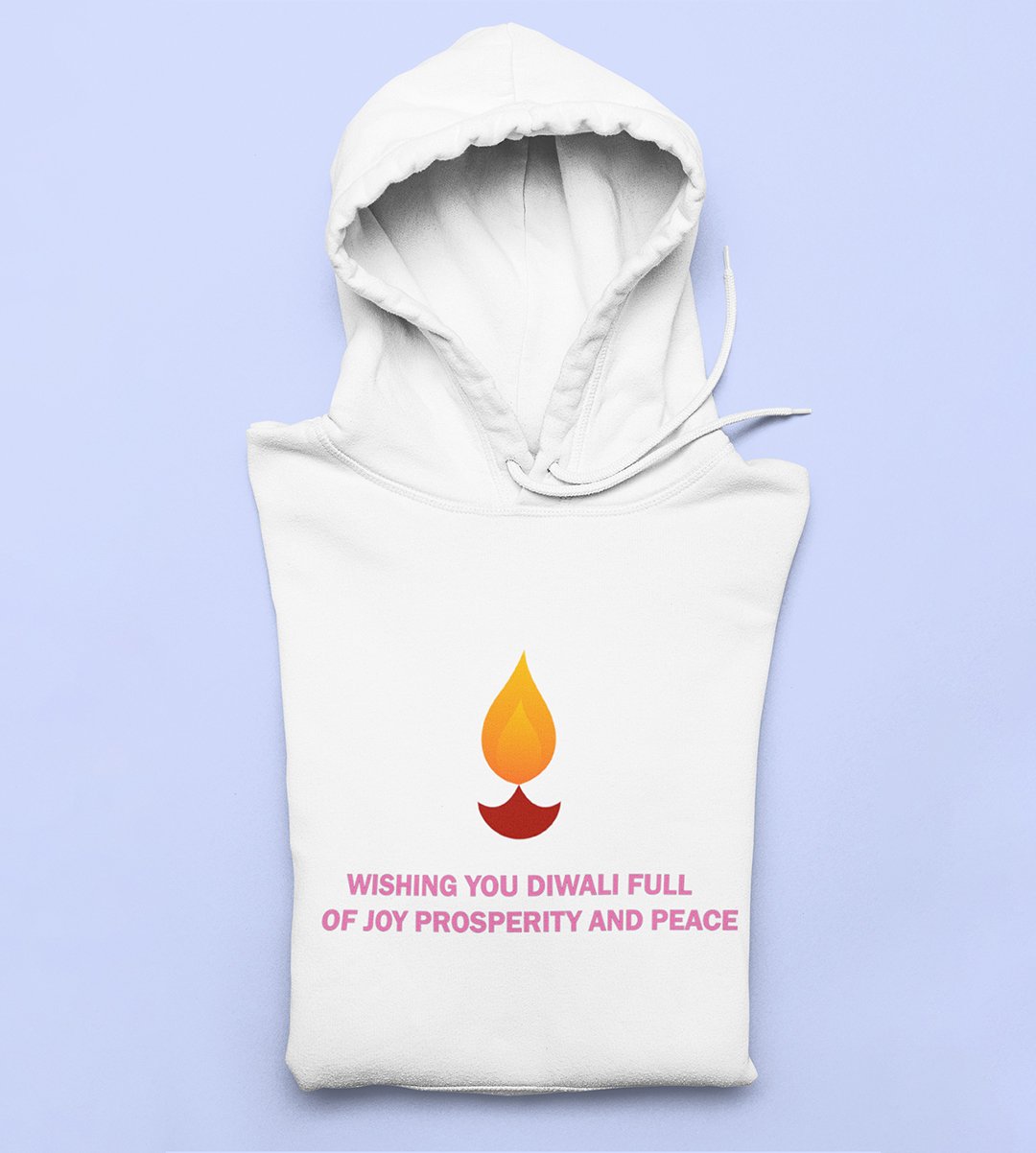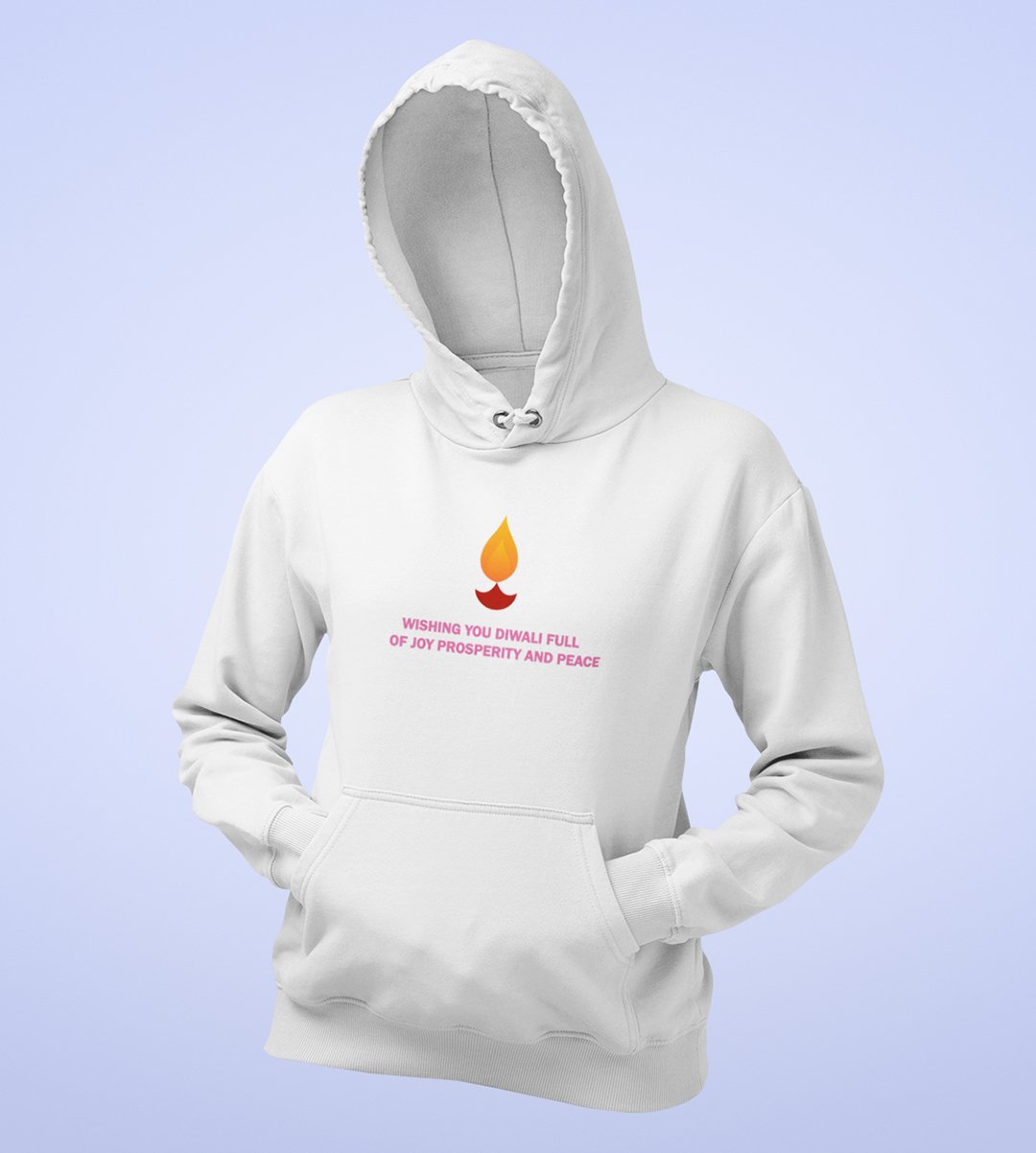 Send heartfelt Diwali wishes with our "Diwali Wishes" White Hoodie . This design embodies the essence of the festival, wishing a celebration full of joy, prosperity, and peace. Sip your and share these blessings with your loved ones, spreading the Diwali spirit.