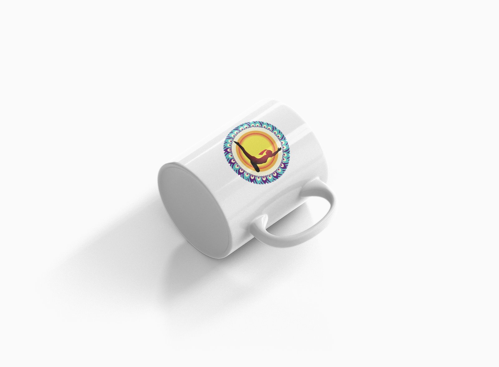 Women Doing Yoga Sun Chakra in background - Printed Coffee Mugs For Yoga Lovers