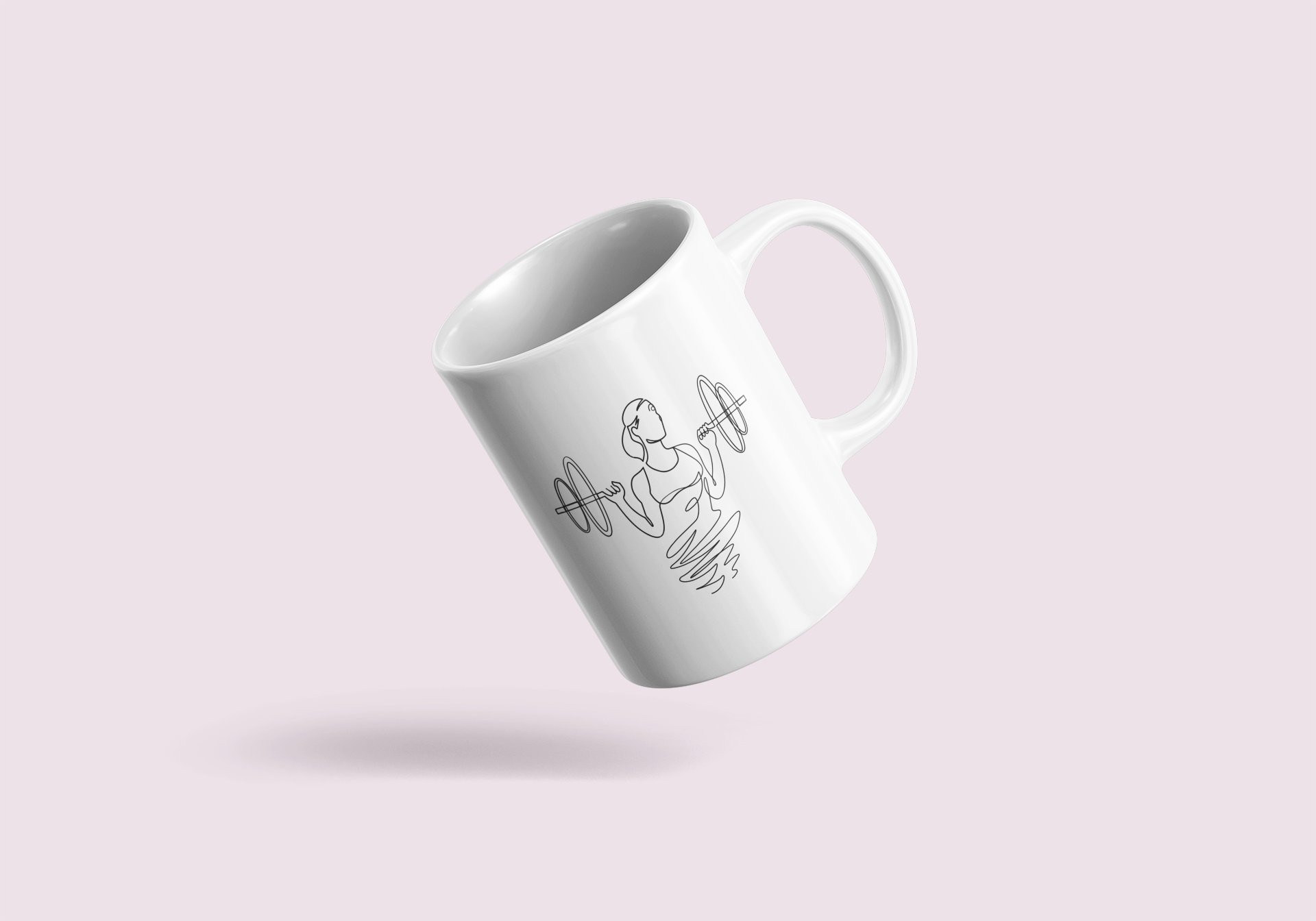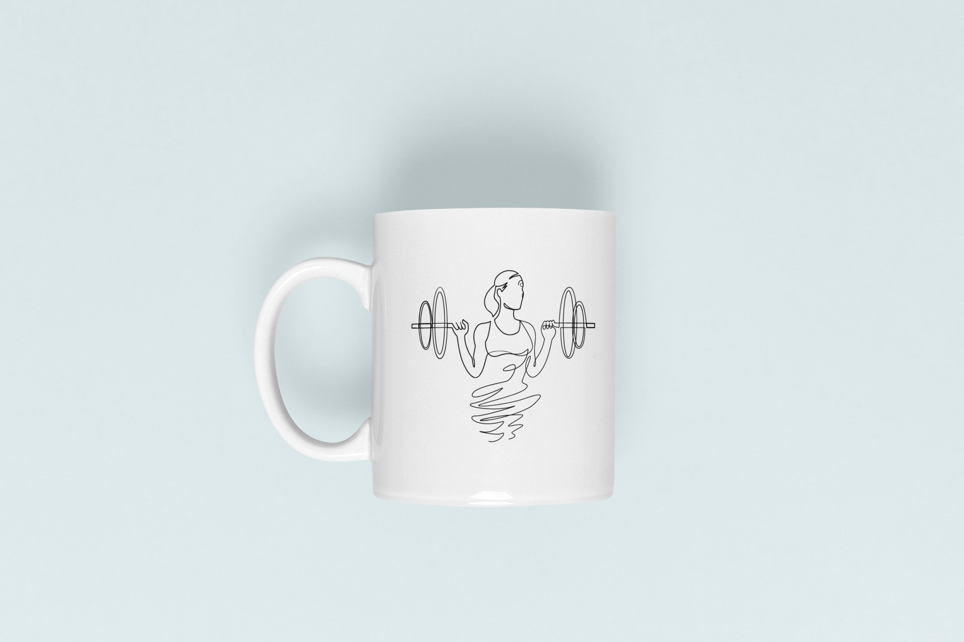 Women Lifting weight- line art themed printed ceramic white coffee and tea mugs/ cups