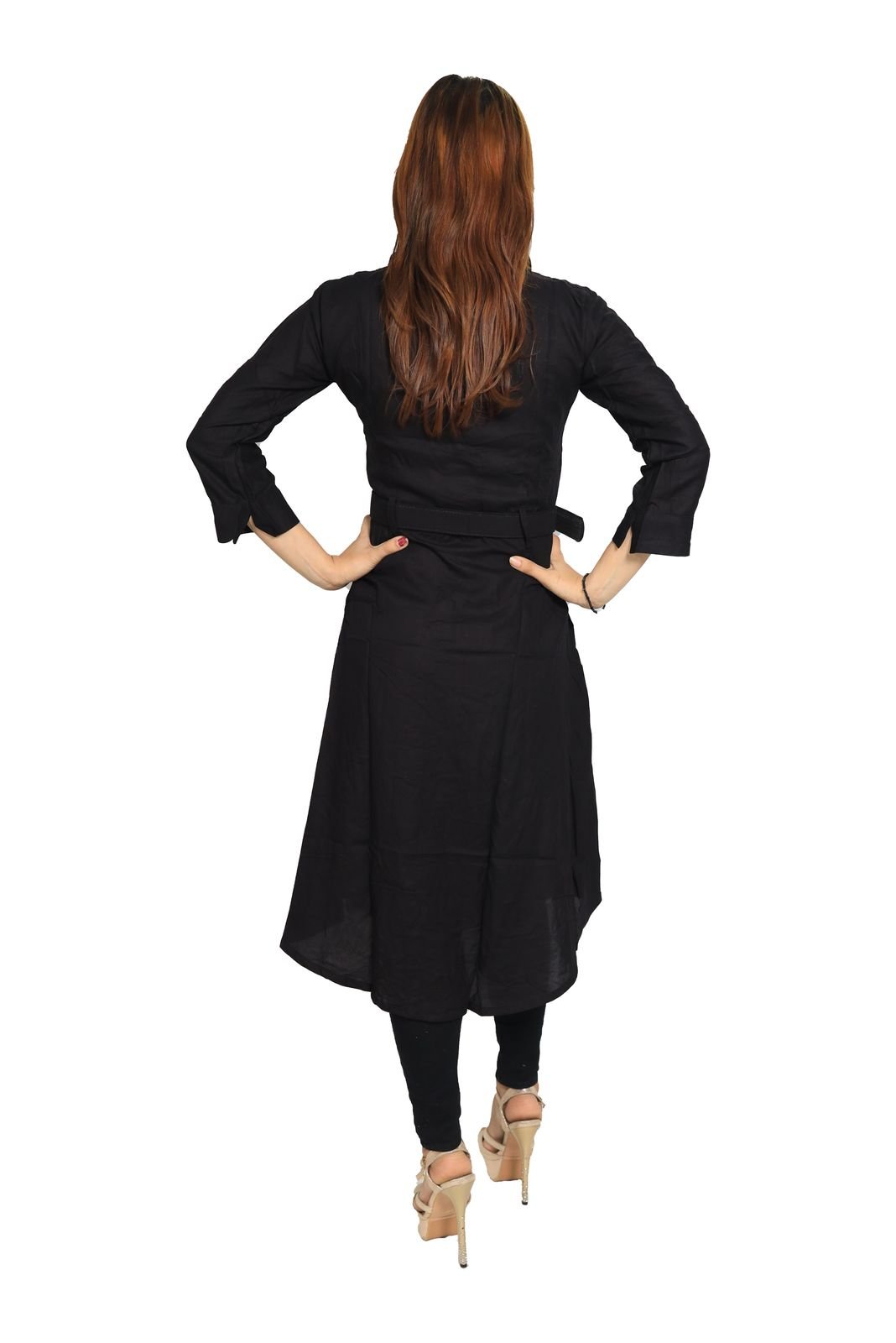 Red roses- belt embroided straight Kurti for Womens/ girls (black kurti)- Made up of Rayon and designed for you plesant and comfy