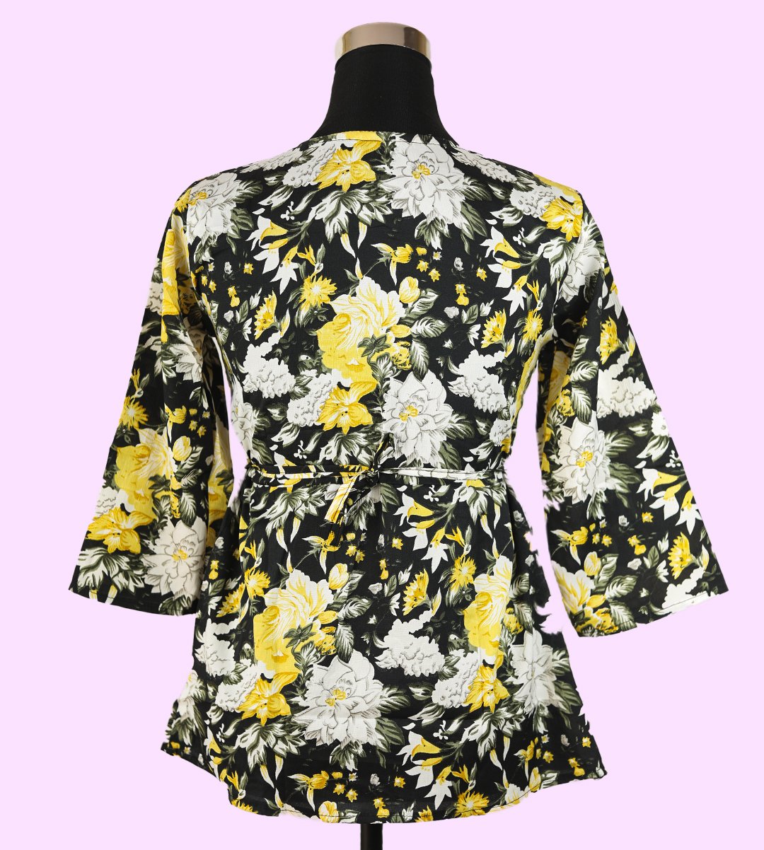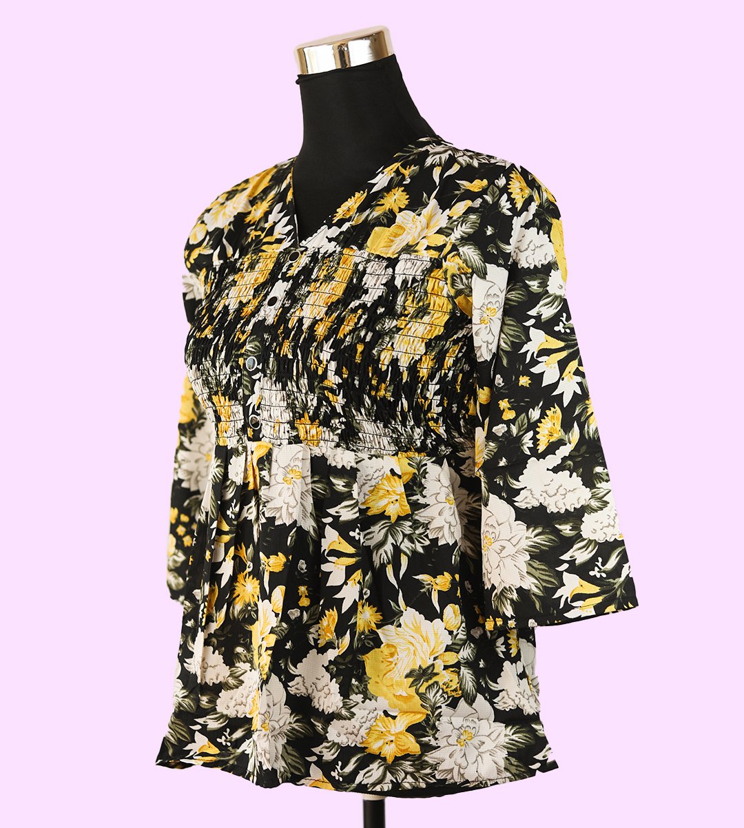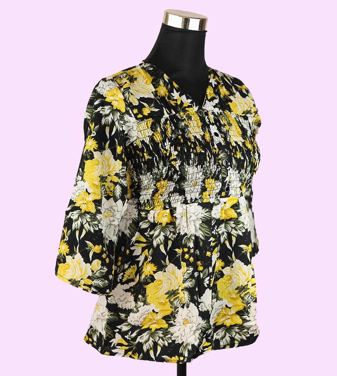 Women's Floral V-Neck Top in Black and Yellow - Versatile and Stylish Fashion Choice