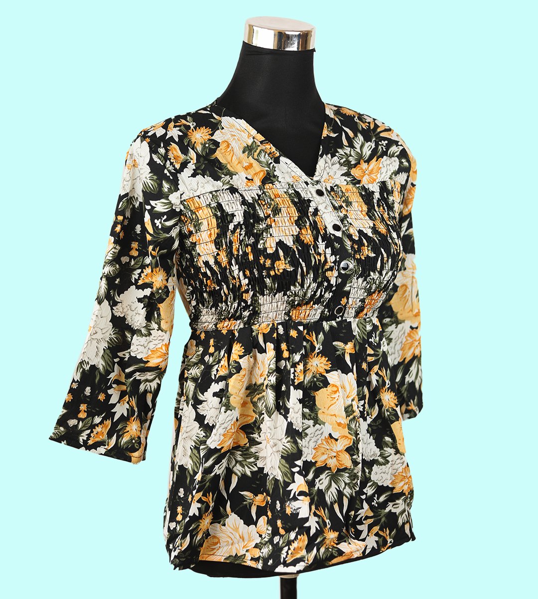 Brighten up your wardrobe with our Women's Floral V-Neck Top in Light Orange, a fresh and stylish addition to your style. This top features a classic V-neck design and offers a regular fit, making it a versatile choice for various occasions. Crafted from soft Rayon fabric, this top ensures both style and breathability. The top is adorned with a captivating floral pattern, creating a stunning and eye-catching look.