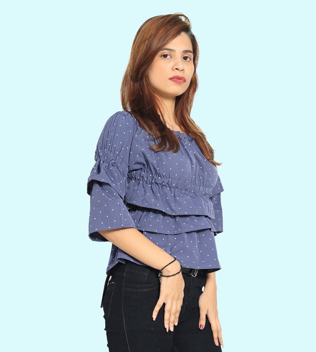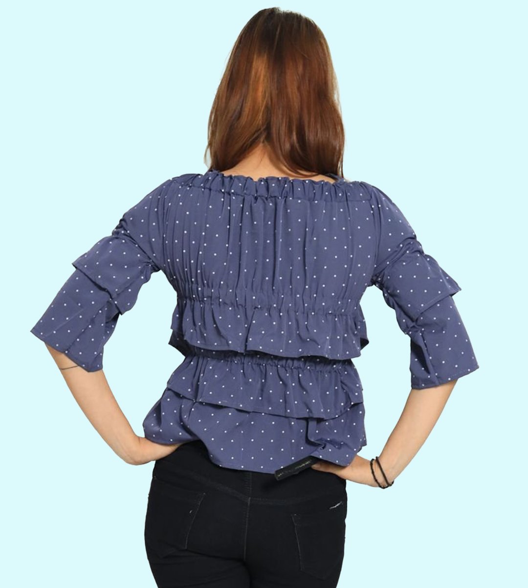 White potka dots printed womens top (Navy blue) - Made up of Rayon for your plesant and cozy