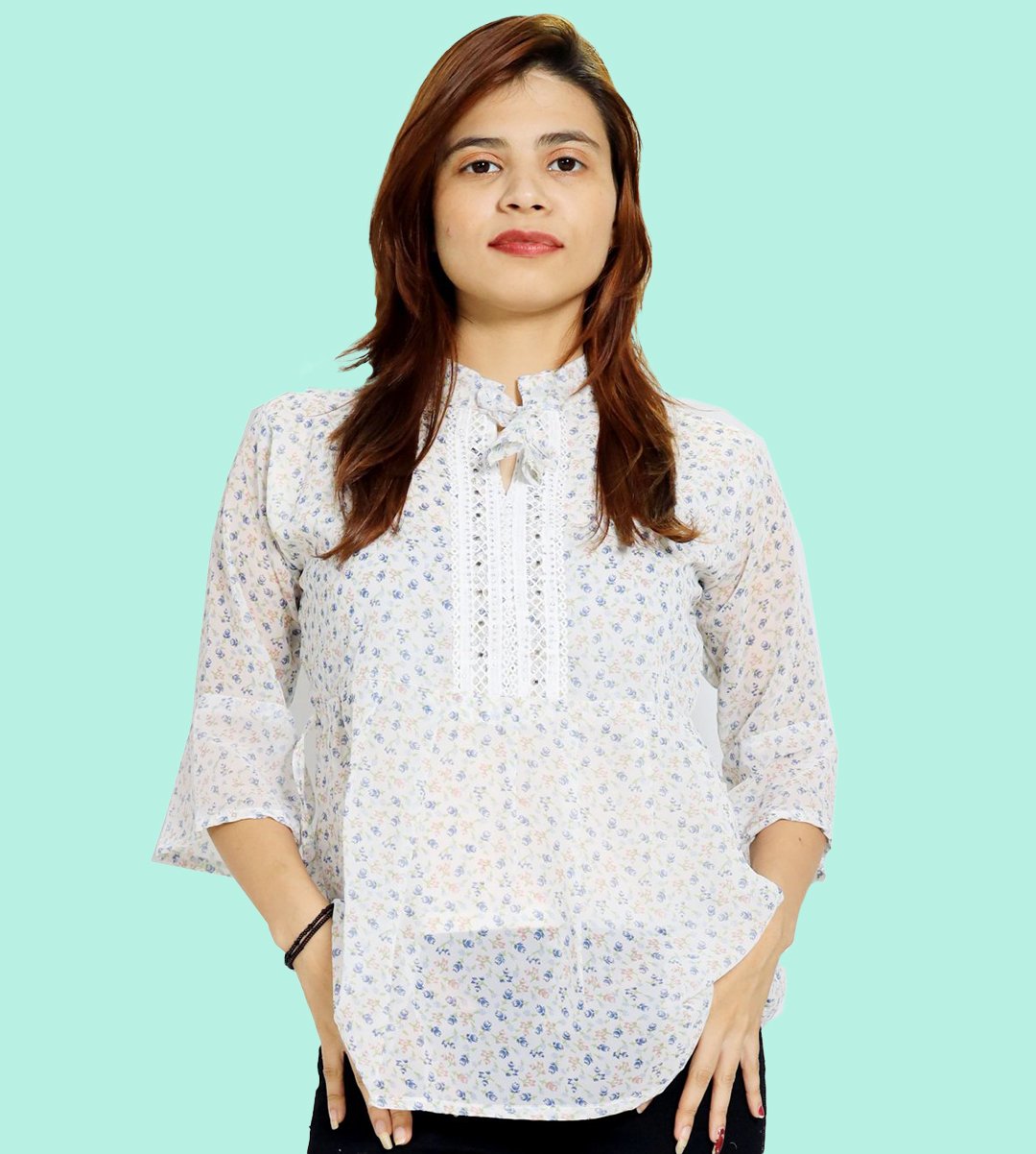 Women loves to wear top of any age groups. The fashion is not only limited upto young girls / teenagers but some married women also love to wear it. The recognization of top is very much popular in 21st century. It is used by the modernized ladies. Easy to wear. It looks good with jeans or jeggings. We have brought you a full collection of floral designs printed top to choose from. This is made up of Rayon and designed for your plesant and cozy.