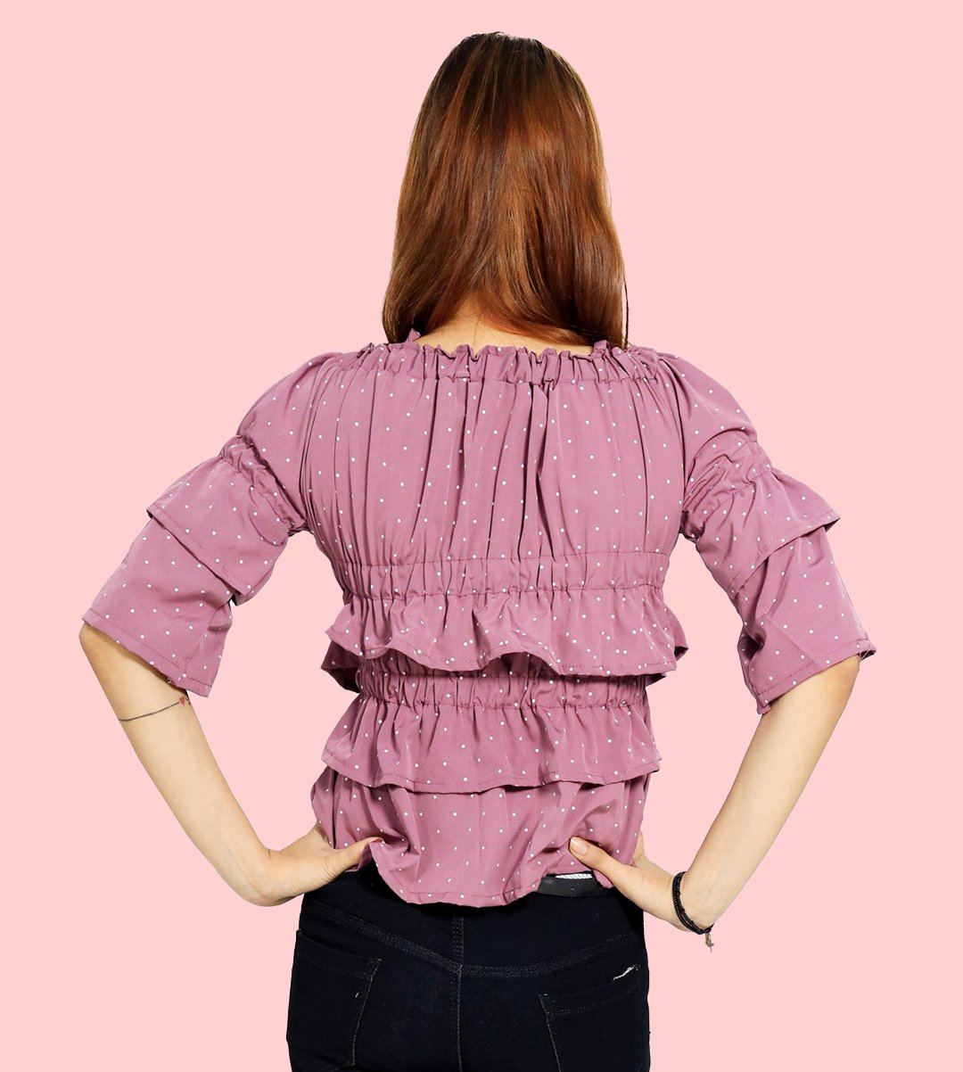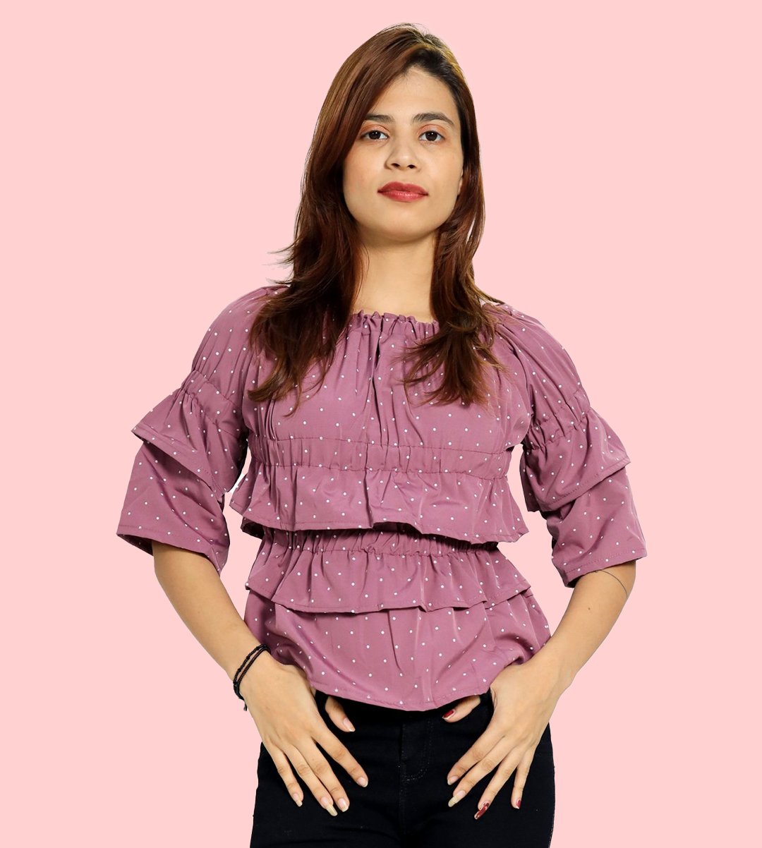 White potka dotsprints floral womens printed top (purple top) - Made up of Rayon for your plesant and cozy