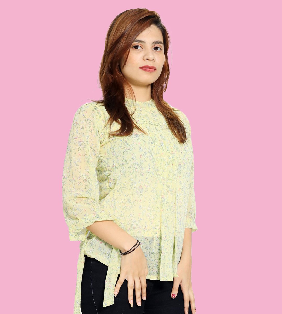 Women loves to wear top of any age groups. The fashion is not only limited upto young girls / teenagers but some married women also love to wear it. The recognization of top is very much popular in 21st century. It is used by the modernized ladies. Easy to wear. It looks good with jeans or jeggings. We have brought you a full collection of floral designs printed top to choose from. This is made up of Rayon and designed for your plesant and cozy.