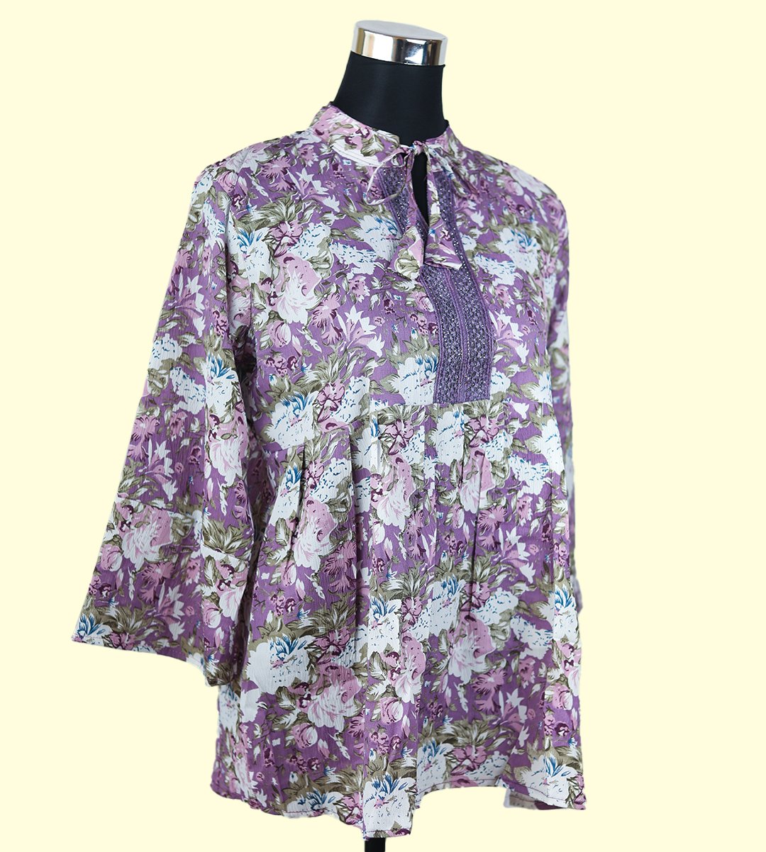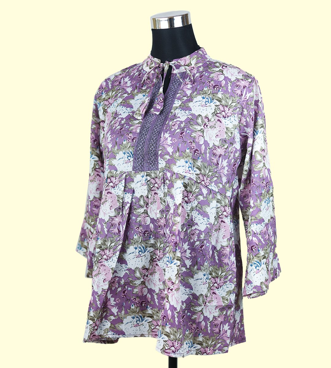 Elevate your wardrobe with our Women's Round Neck Top featuring a Lavender Floral Print, an elegant and refreshing addition to your style. This top showcases a classic round neck design and offers a regular fit, making it suitable for various occasions. Crafted from soft Rayon fabric, this top ensures both style and breathability. The captivating Lavender Floral Print adds a touch of sophistication and a refreshing touch to your look.