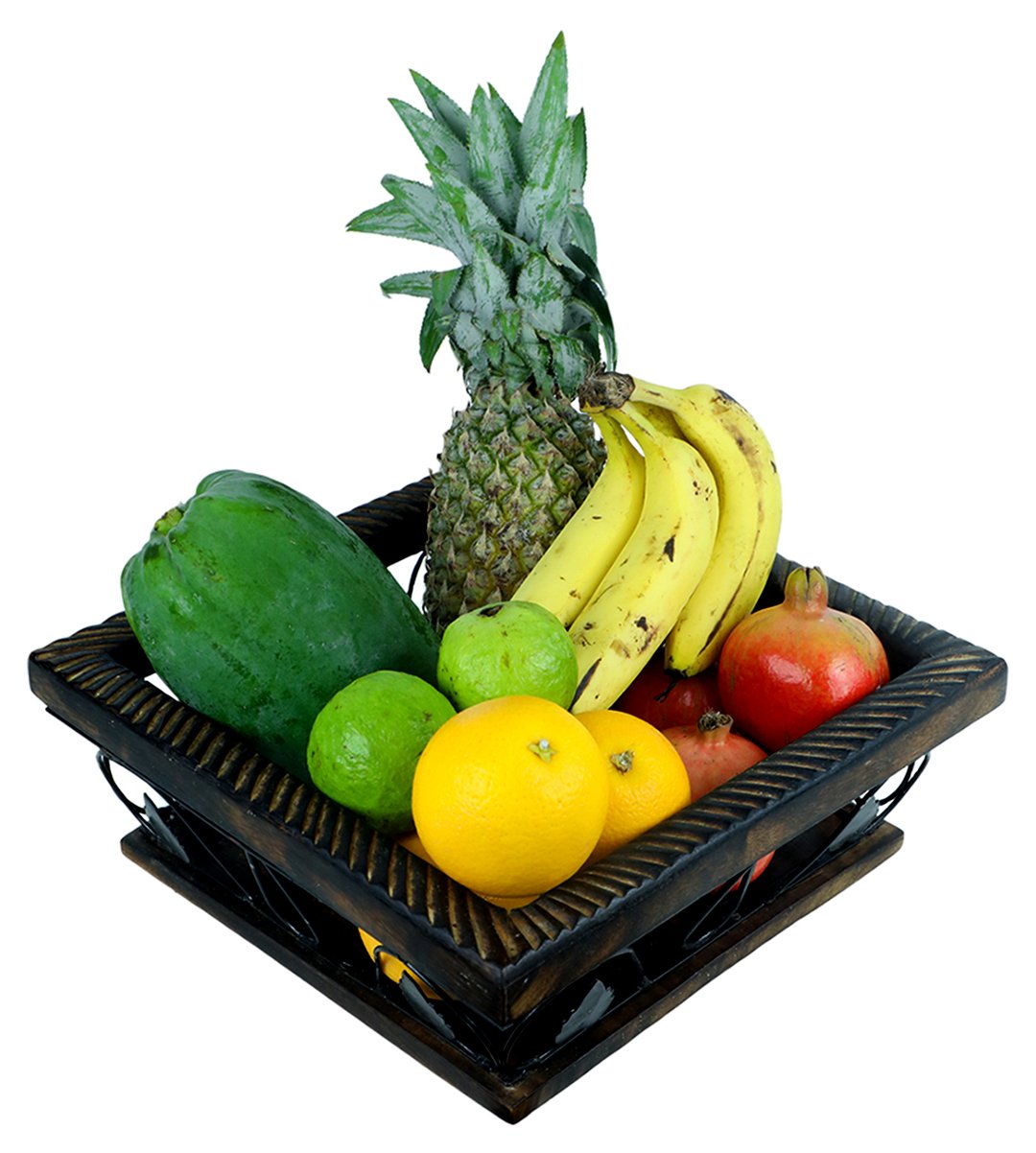 Wooden and wrought iron fruit and vegetable basket/ fruit vessel/ or a fruit container is used to keep both fruits and vegetables in it. The product is made up from wrought iron and wood. The designs enhancing the product into a classified one. It has best finishing. Those who love fruits will ofcourse buy it. You must have your favourite one. We have brought you many fruit and vegetable containers to choose from. You can gift it to your family, relatives, friends, siblings. Also it can be gifted in birthdays, marriages, anniversaries, house warming parties ,chirstmas parties, kitty parties etc. Grab it as soon as possible.