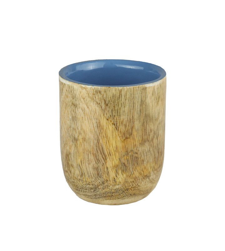 Wooden Glass Set Of 2, Most Unique Glasses For Kitchen Use. Blue Colour And Wooden Coating
