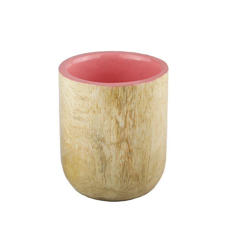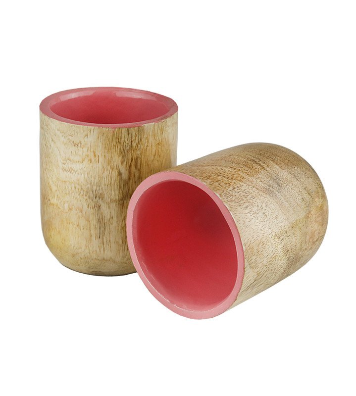 Wooden Glass Set Of 2, Most Unique Glasses For Kitchen Use. Pink Colour And Wooden Coating